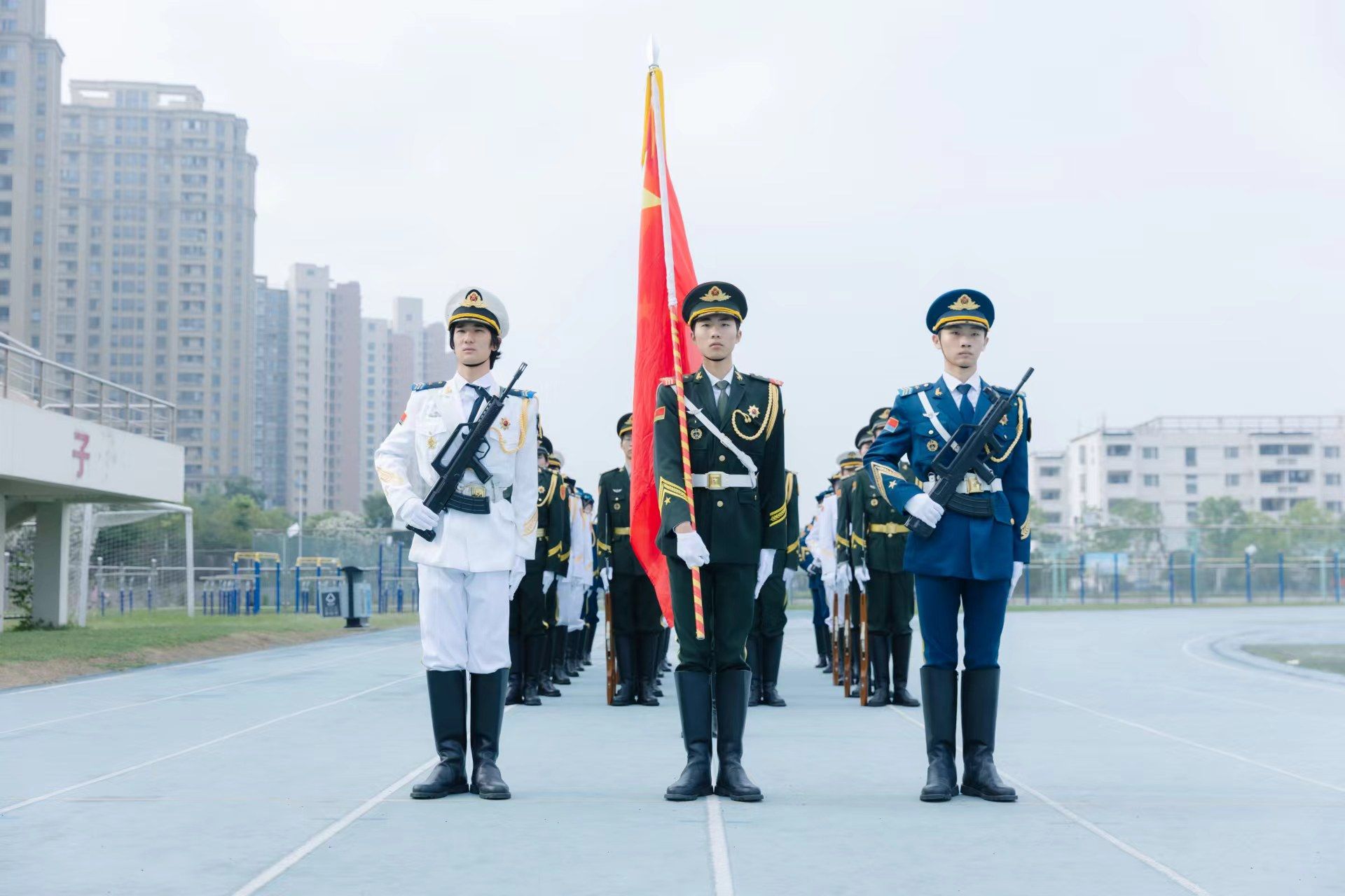 仪式现场,国旗护卫队的同学们步伐铿锵,动作整齐划一,展现了金科学子的纪律性和集体荣誉感。当国歌响起,全场肃立,每个人的表情都显得格外庄重,这是对国家的尊重,也是对自己身份的认同。
