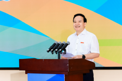 校领导与校友、教师、社会人员及高中生代表共同按动启动柱