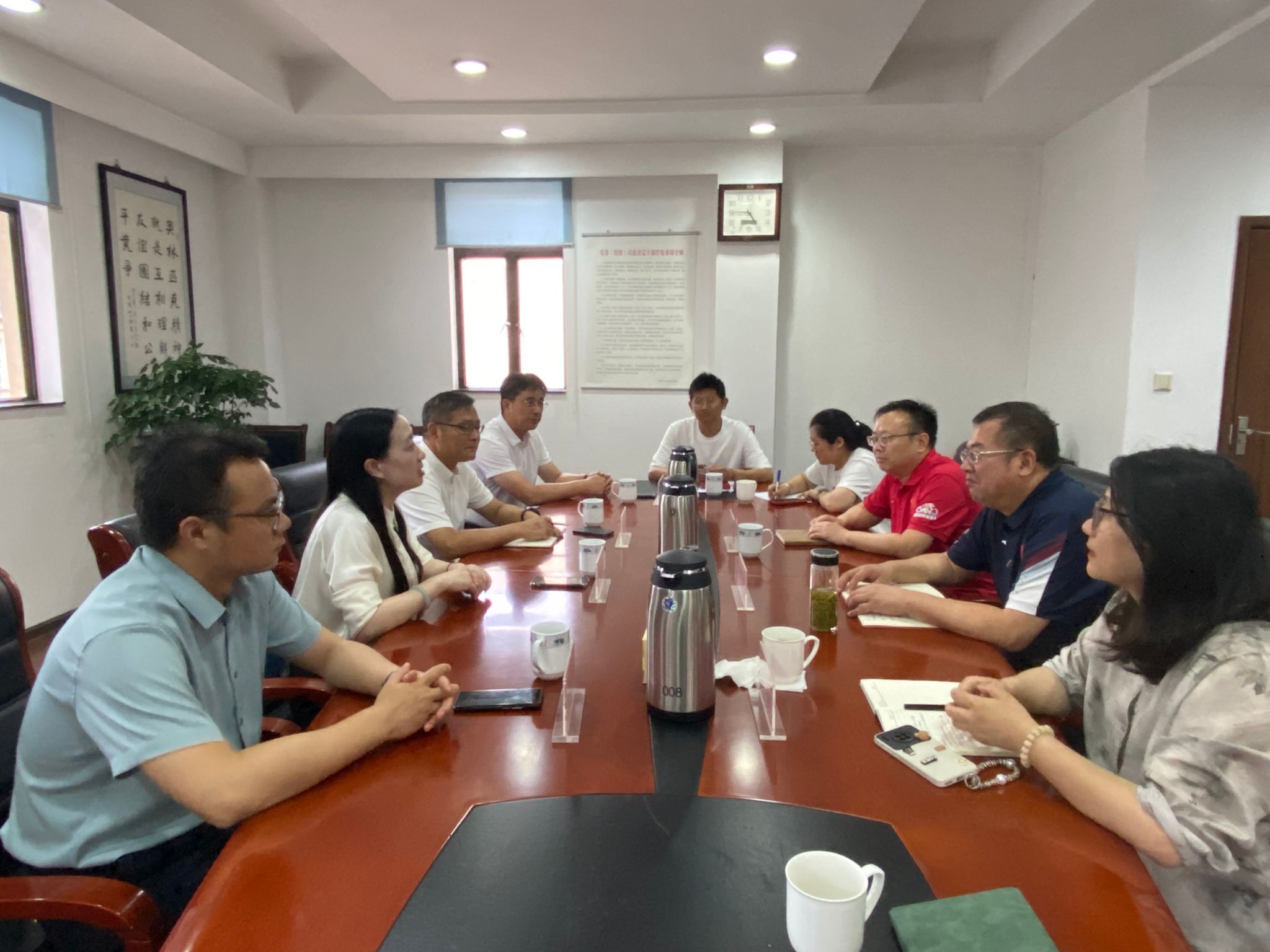 体育部直属党支部书记周敏、副主任沈辉、教师代表吴畏陪同交流调研。南京市体育竞赛和社会体育指导中心副主任戴晴、办公室主任饶文娟、运行部副部长杨菲菲、保障部副部长胡智超参加交流研讨。