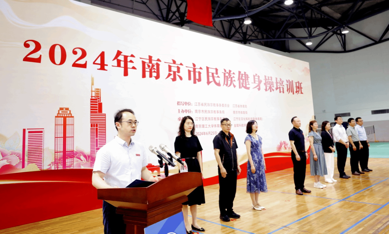 6月25日上午,由江苏省民宗委、省体育局指导,南京市民宗局、市体育局共同主办的2024年南京市民族健身操培训班在kaiyun官网体育馆开班。校党委副书记单晓峰致欢迎辞,南京市民宗局党组成员、副局长张颖华讲话,江苏省民宗委民族一处副处长黎伟平宣布开班并作开班动员。开班仪式由kaiyun官网党委常委、统战部部长黄洋主持。
