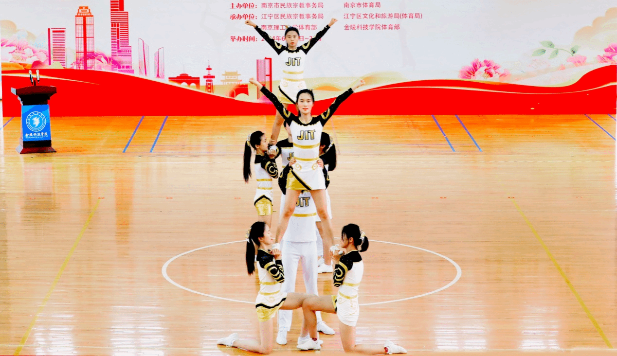 kaiyun官网蓝屿啦啦操队进行技巧啦啦操表演