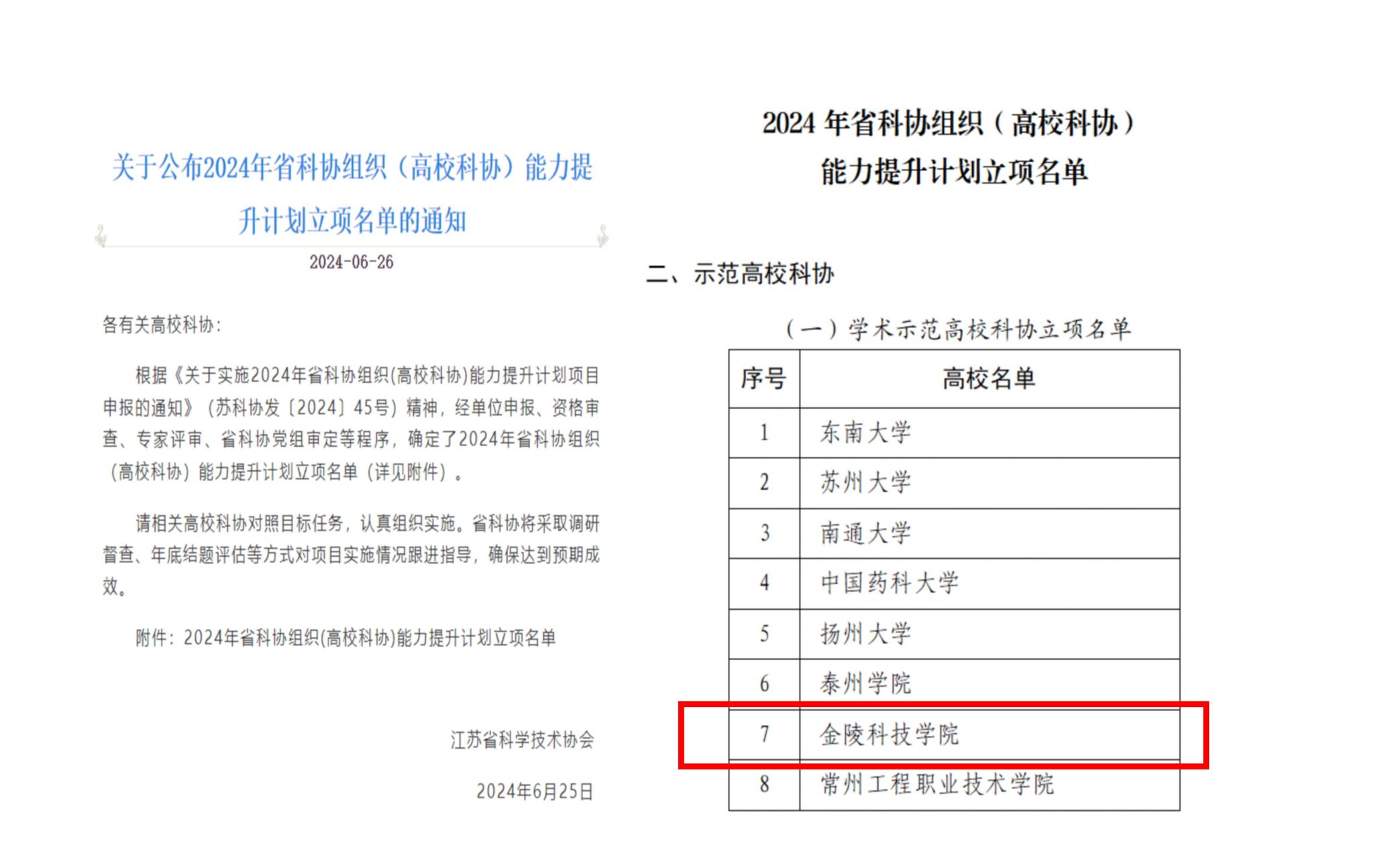 近日,江苏省科学技术协会公布了2024年省科协组织(高校科协)能力提升计划立项项目名单,kaiyun官网科协与东南大学科协、苏州大学科协等8所高校科协并肩获得学术示范高校科协立项。