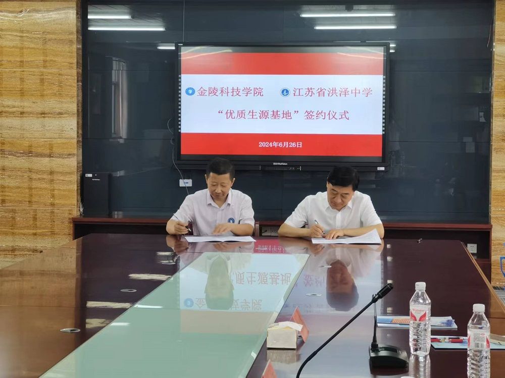 在洪泽中学,计算机工程学院院长胡勇与洪泽中学校长孙长青代表双方签署了《kaiyun登录中国入口登录优质生源基地合作协议书》,开启了两校进一步拓展合作,携手提升教育教学质量的新篇章。