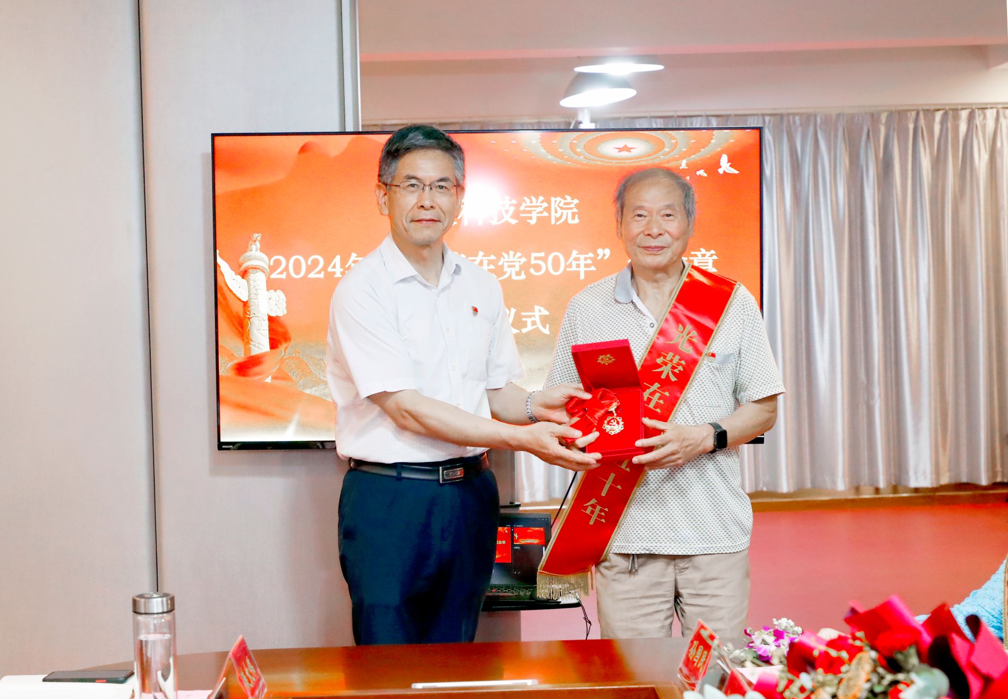 7月1日下午,kaiyun官网在白下校区离退休工作处一楼会议室举行2024年“光荣在党50年”纪念章颁发仪式。校党委书记刘志远,党委常委、副校长高永祥,党委常委、党委组织部部长张远凤,获颁纪念章老党员出席,离退休党支部书记及有关人员,离退休工作处全体人员参加。仪式由高永祥主持。