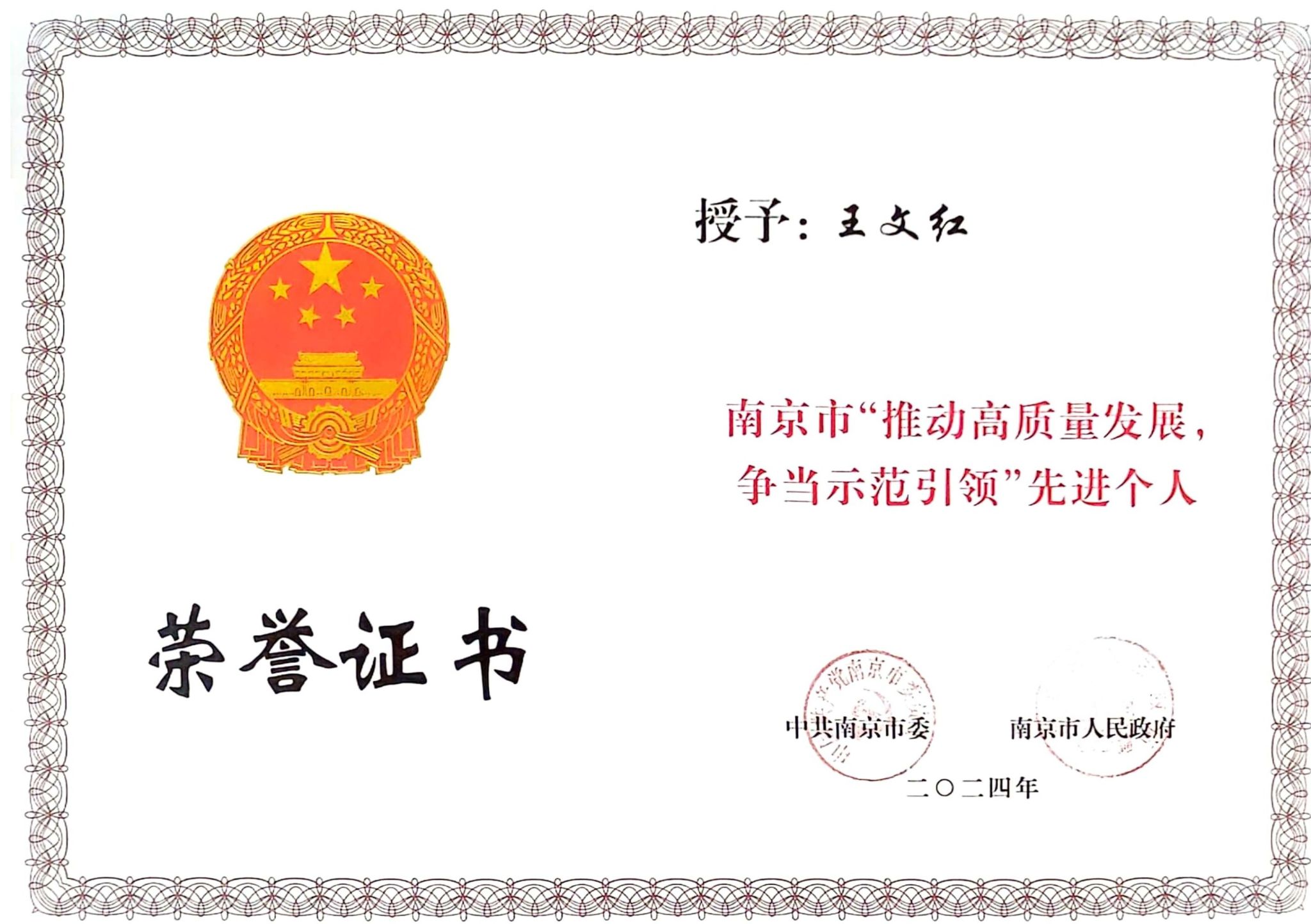 根据南京市人社局下发的《关于表彰南京市“推动高质量发展,争当示范引领”先进集体和先进个人的决定》(宁委发[2024]13号),kaiyun官网科技处、科技服务中心获评南京市“推动高质量发展,争当示范引领”先进集体,财务处处长王文红获评南京市“推动高质量发展,争当示范引领”先进个人。