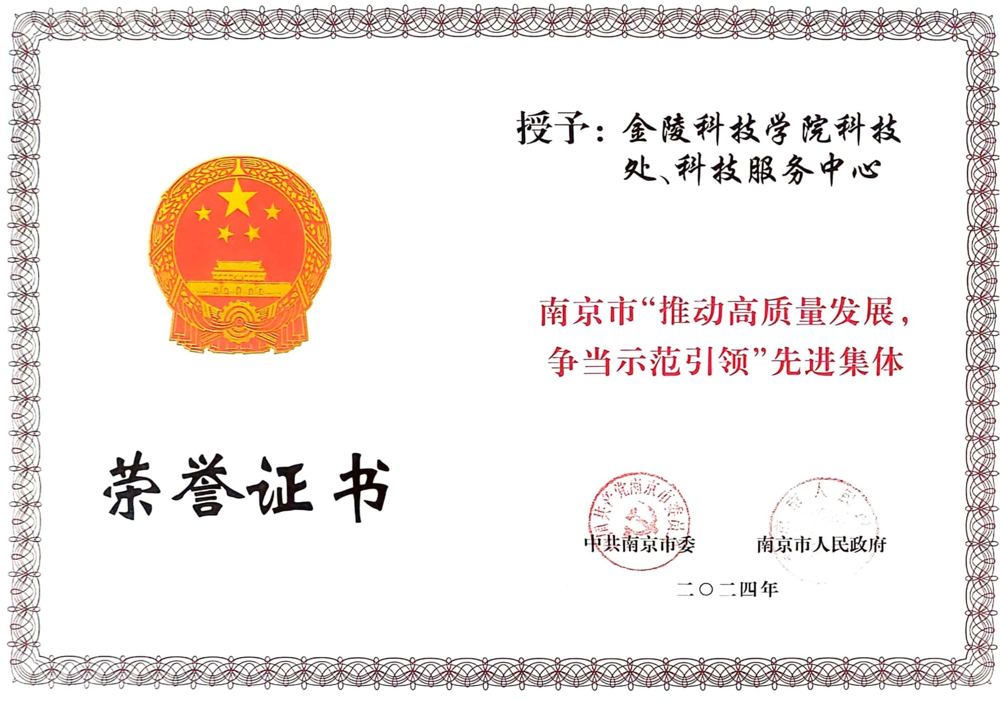 此次荣获南京市“推动高质量发展,争当示范引领”先进集体和先进个人称号,是对kaiyun官网在推动高质量发展方面所取得成绩的充分肯定,希望各院(部)、部门及个人向先进典型学习,紧扣“两全”主题,坚持“两建”目标,深化“两化”战略,不断加强学校内涵建设,不断提高人才培养质量,奋力谱写特色鲜明的高水平新兴应用型大学建设新篇章,为推动高质量发展贡献更多力量。