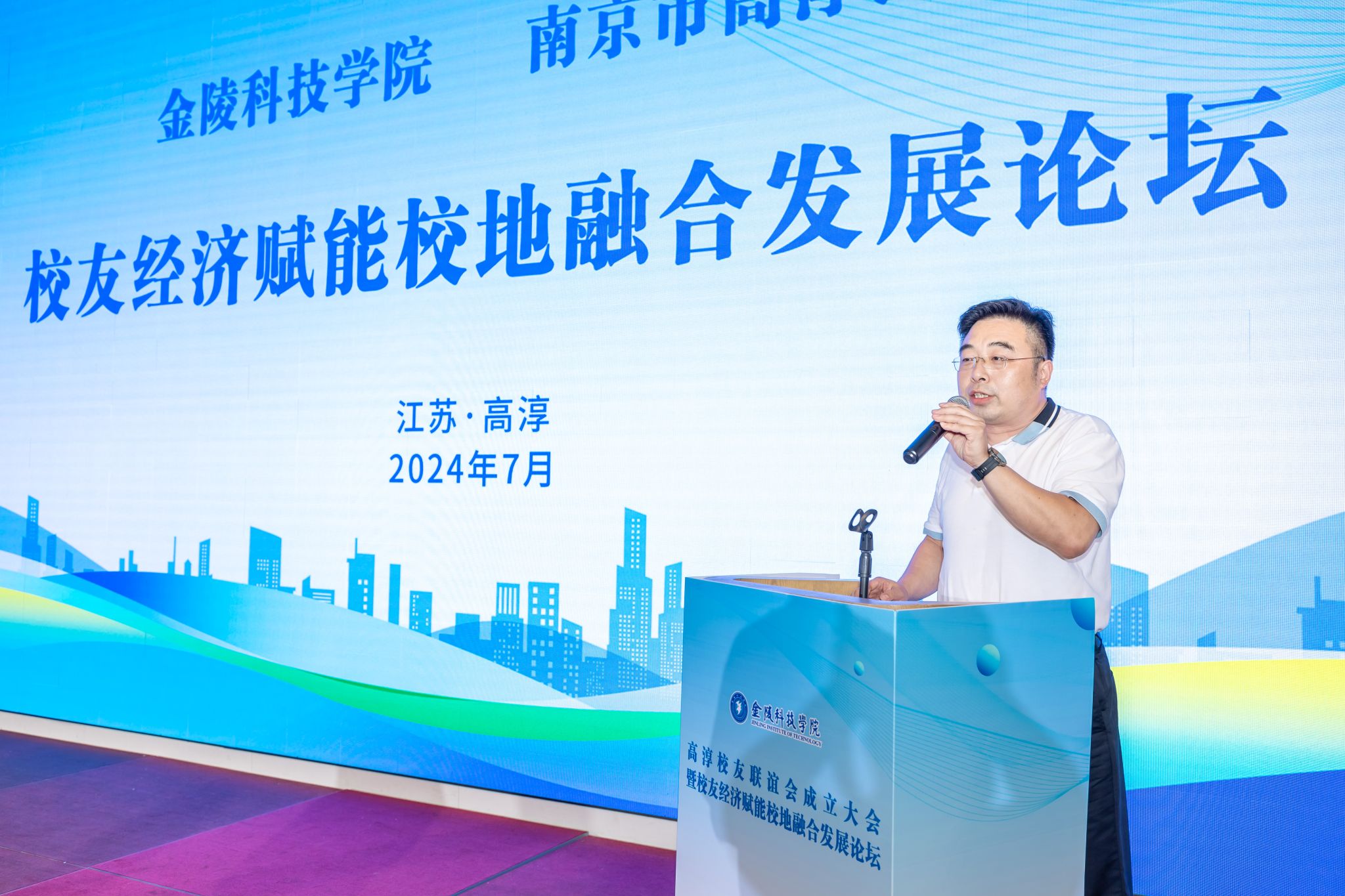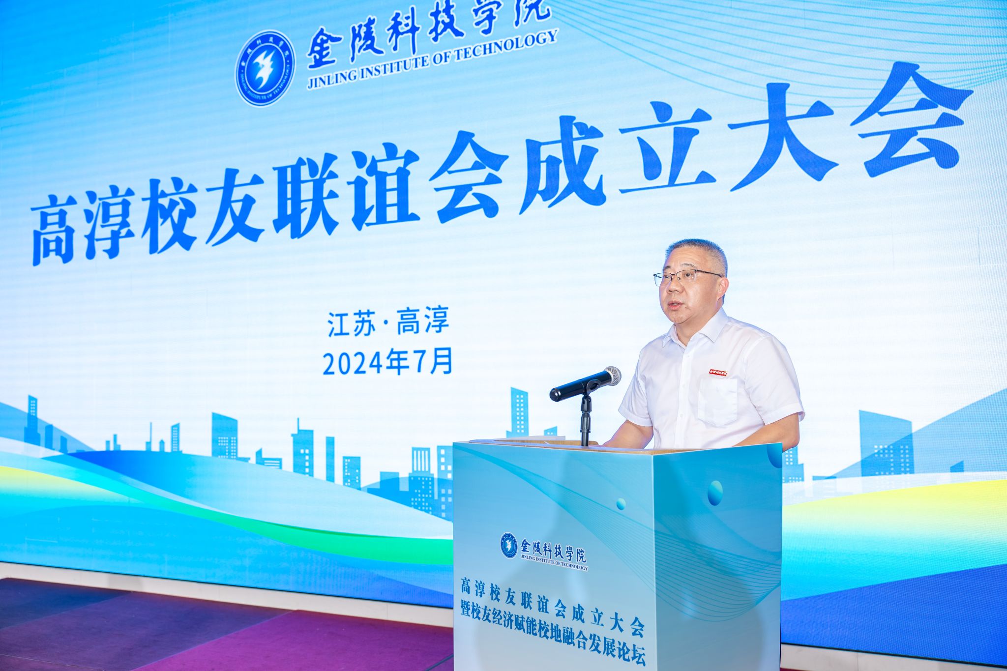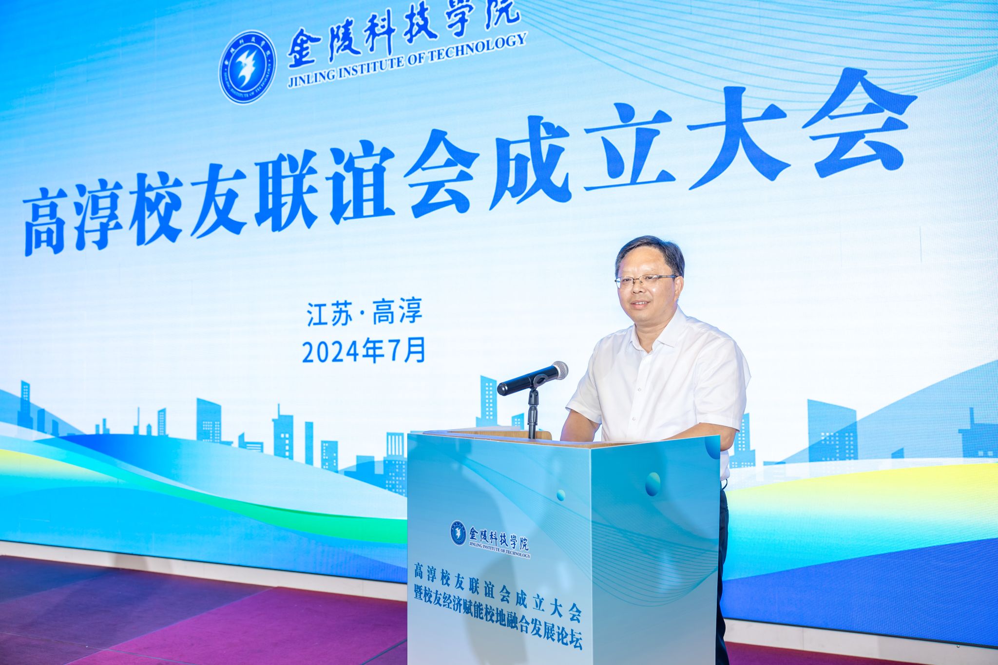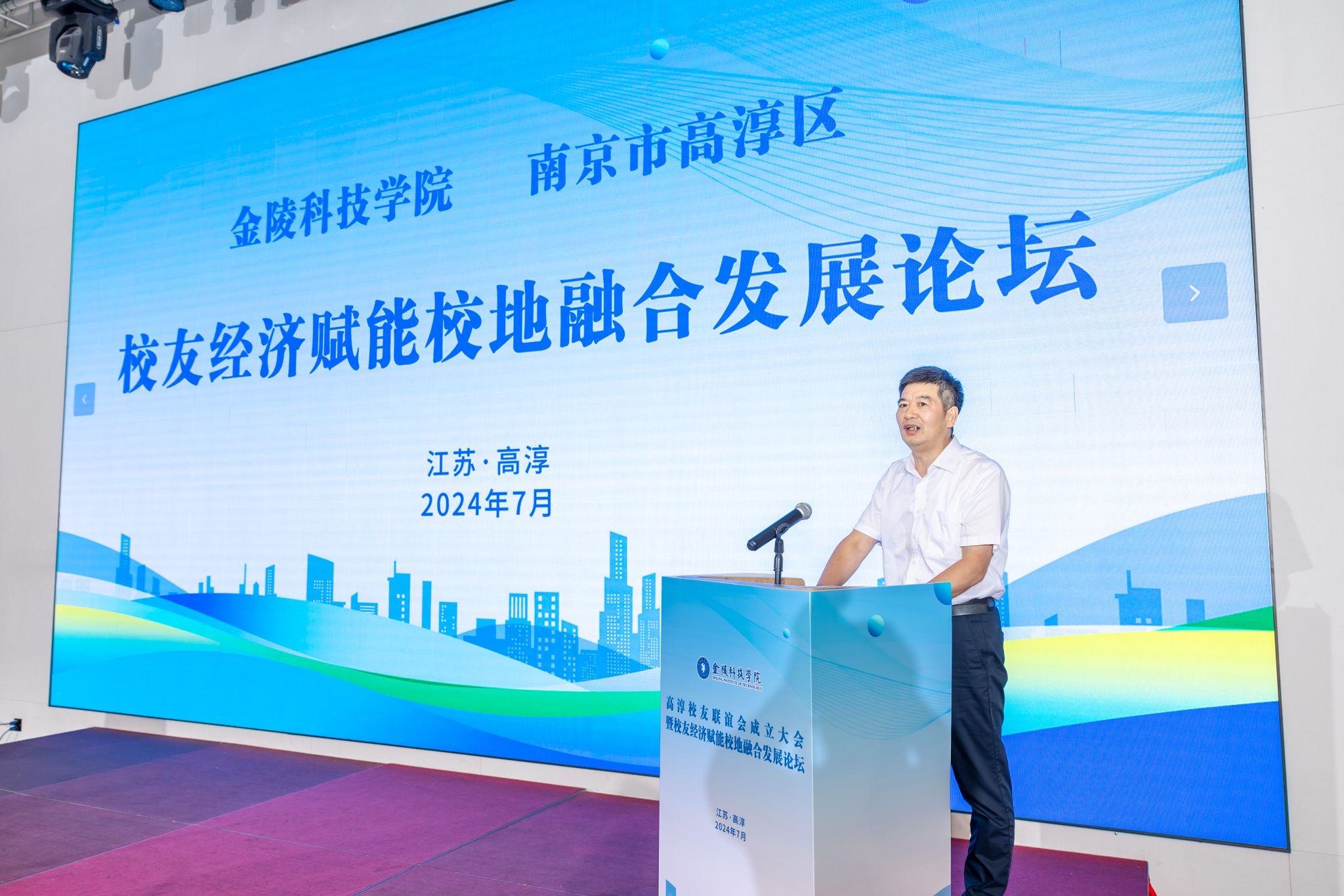 朱启军在致辞中介绍了高淳区的发展优势和人才强区战略,并表示,金科院和校友对高淳区给予的高度的关心和支持,有力促进了校地高质量融合发展。校友联谊会的成立和论坛的成功举办,将为高淳、学校和校友们架起沟通的桥、创建深度合作的平台。他希望与金科院在专业建设、技术研发、创新应用和产业升级方面建立更紧密的合作,深化融合发展,促成一批创新项目、成果和人才在高淳落地扎根;希望校友企业充分利用好校地优势,在技术人才培养、科技成果转化、技术创新升级、实训基地共建、产学研共建等方面加快做优做强。希望高淳通过提供最优质的服务、最优惠的政策和最优良的环境,全力做好服务保障工作,推动实现校友经济的蓬勃发展,全力激活融合发展的势头,助力经济社会高质量发展。