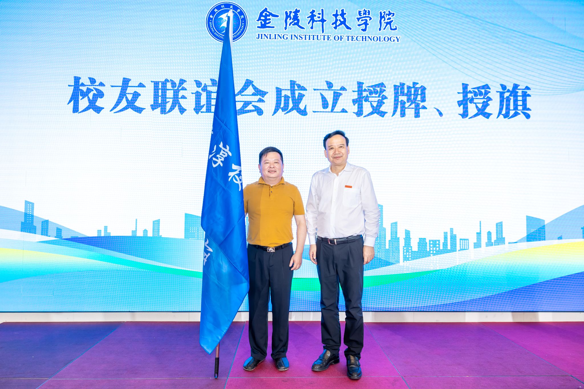 校长刘永彪为校友联谊会授旗