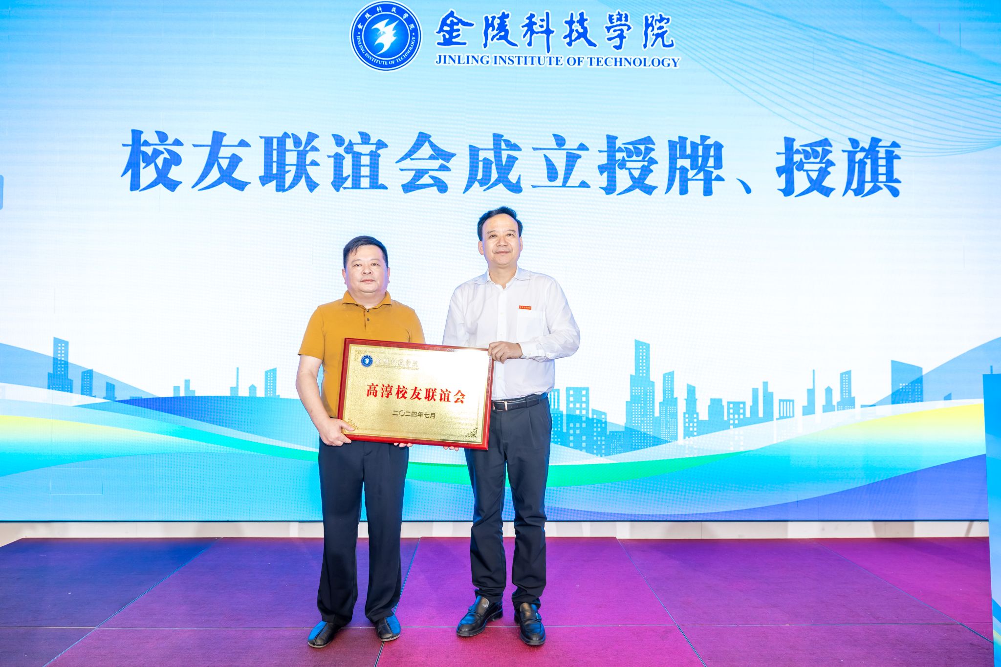 校友联谊会成立大会上,与会人员听取了校友联谊会准备工作情况汇报,审议通过了会长、常务副会长、副会长、秘书长名单,刘永彪为高淳校友联谊会会长朱小敏,常务副会长沈广龙,副会长王秀明、诸定福、陈贤华、邢鸿明,秘书长孙飞颁发聘书,并为校友联谊会授牌、授旗。