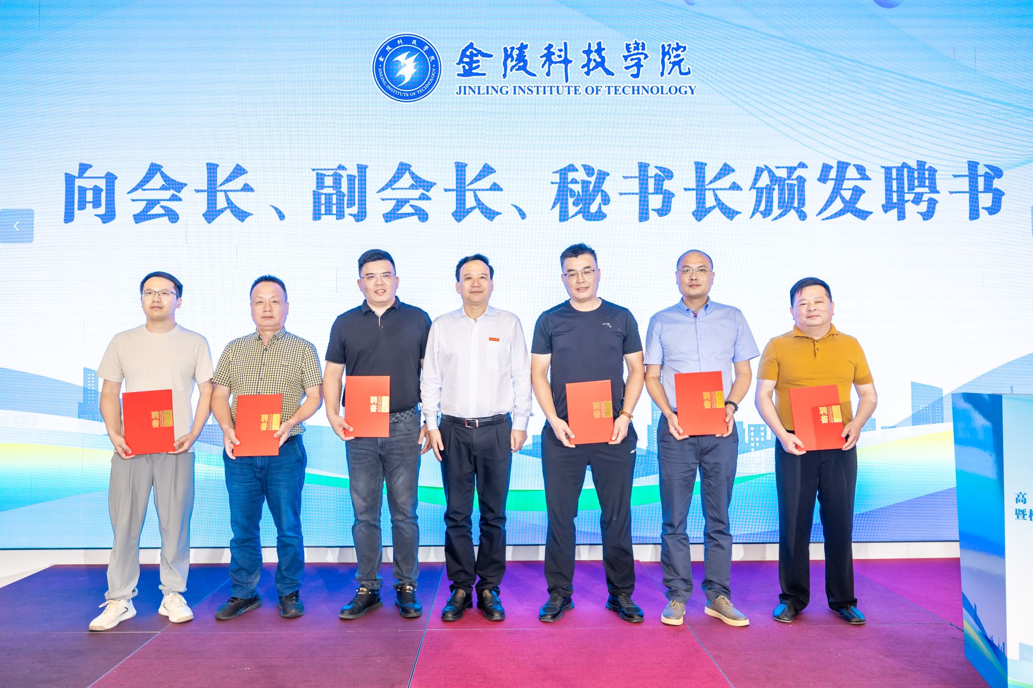 校长刘永彪为校友联谊会会长、常务副会长、副会长、秘书长颁发聘书