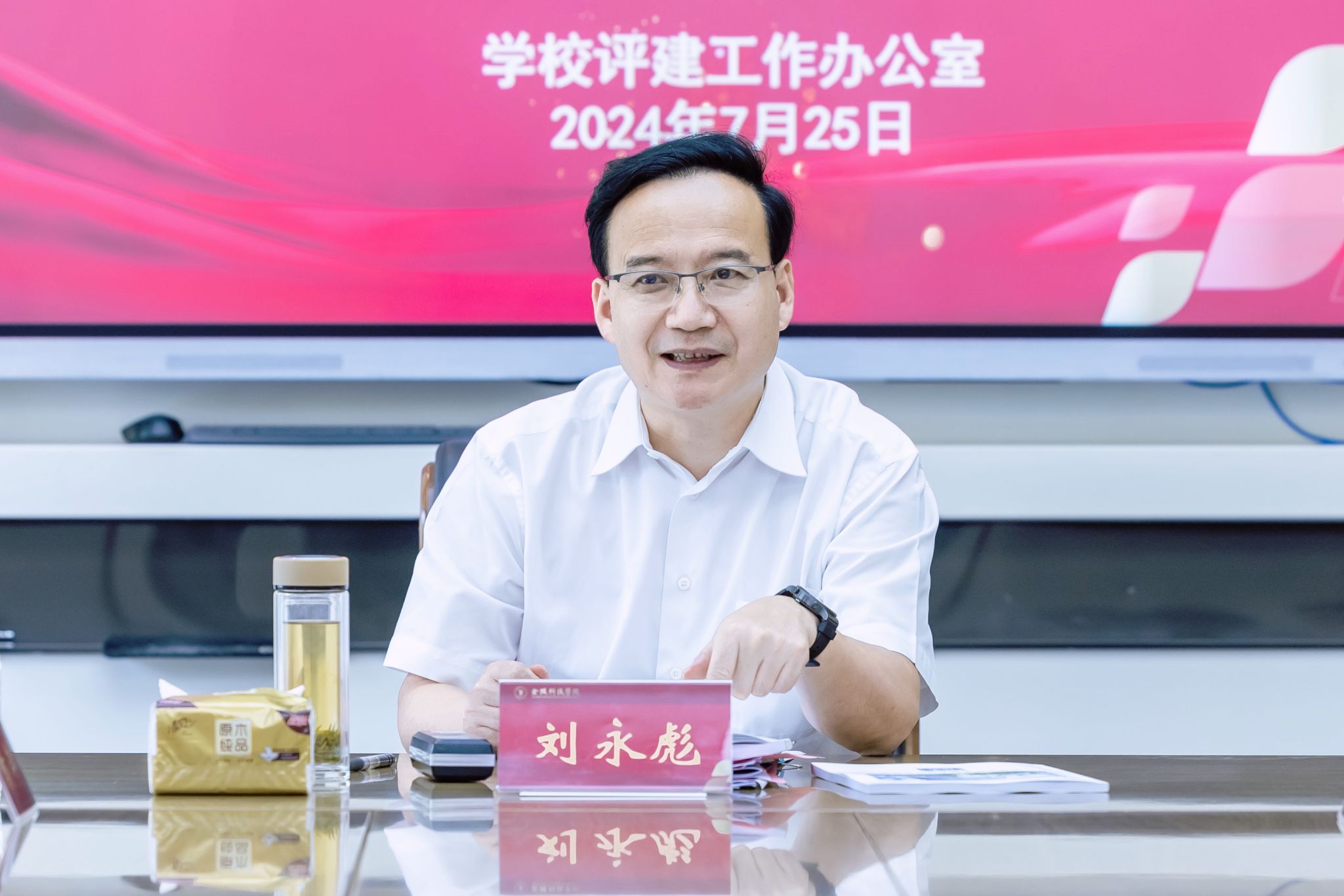 刘永彪结合学校评建工作总体安排,对进一步优化完善自评报告,把好审核评估核心材料“质量关”提出四点要求:一要提高站位,锚定改的目标。自评报告的质量直接关系到评估专家对学校的第一印象,各牵头单位一定要高度重视,提高思想站位,强化第一责任人意识,以上率下抓落实,知行合一促转化,通过高水平的自评报告来呈现“撰写精心、数据精确、问题精准、措施精细”的高质量办学“自画像”。二要紧扣问题,落实改的举措。各单位一定要强化问题意识,坚持问题导向,抓住关键问题,以问题整改推动工作提质增效;要深入剖析问题,对客观存在的问题不回避、不绕弯,做好原因分析与对策改进。三要强化督查,突出改的责任。学校评建办和专项督查组要注重统筹协调,合理安排任务,建立责任清单,层层传导压力,适时开展督查,持续跟踪问效;要全程跟进指导,严明工作纪律,织牢织密“点、线、面”结合的督导网格,确保各单位倒排时序,挂图作战,滚动推进,不折不扣地完成相应整改任务。四是协同发力,彰显改的成效。各成员单位既要分工明确、各司其职,又要加强合作、相互协调,发挥“1+1〉2”的效果,确保工作有序有力推进;牵头部门要深度介入,明晰撰写要求,把握撰写规范,研读审核重点,优选支撑材料;评建办要抓主抓总,及时组织专班,精心打磨论证,力求做到逻辑自洽、结构完整、内容翔实、亮点突出。