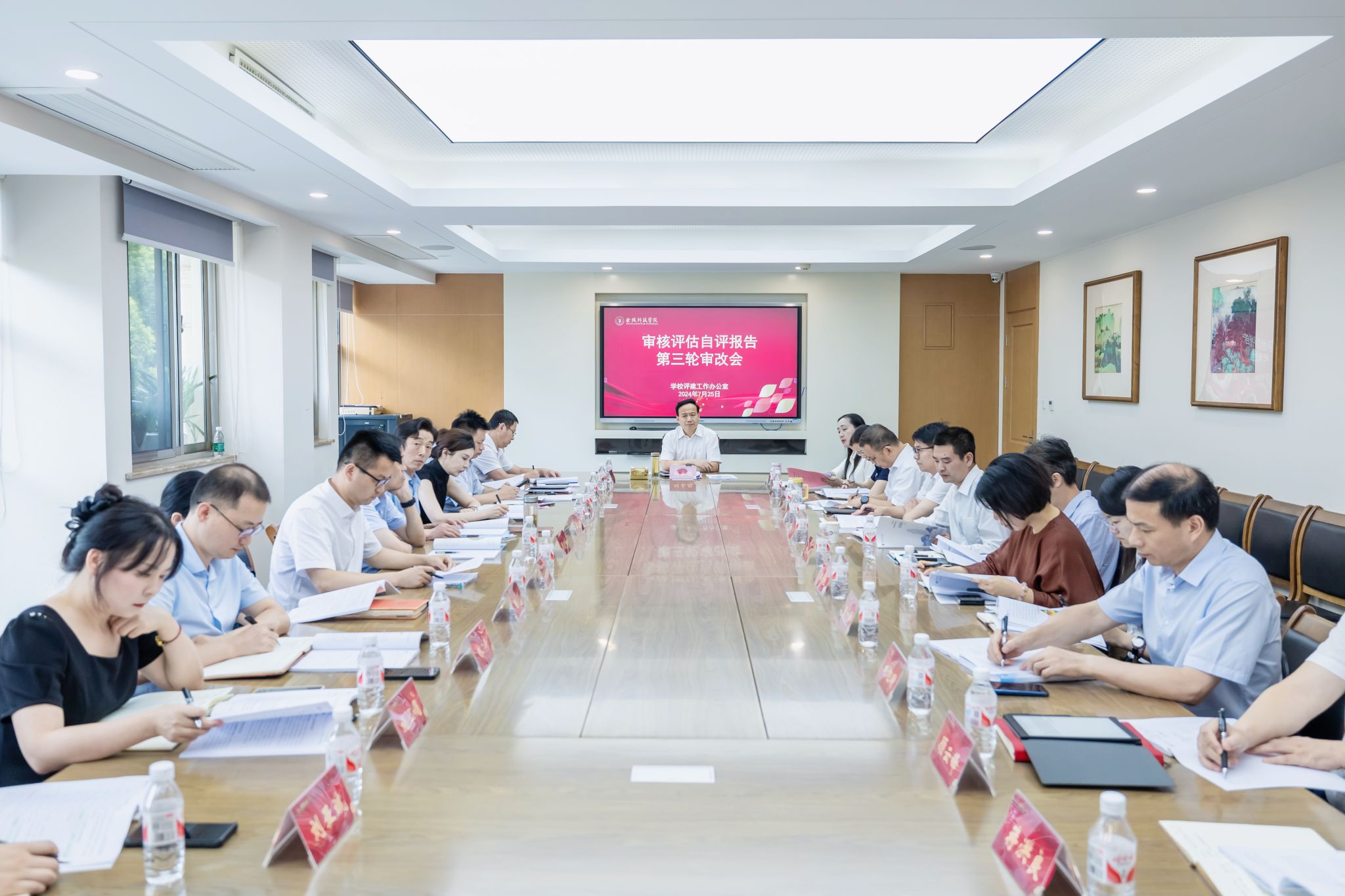 7月25日上午,kaiyun官网在行政楼240会议室召开本科教育教学审核评估自评报告第三轮审改会。校长刘永彪出席会议并讲话,自评报告起草组成员单位主要负责人,教务处、教学质量评估中心负责人及评建办相关工作人员参加会议。会议由副校长顾晓燕主持。