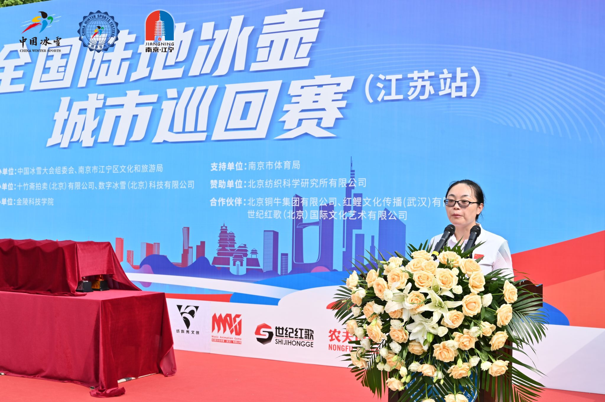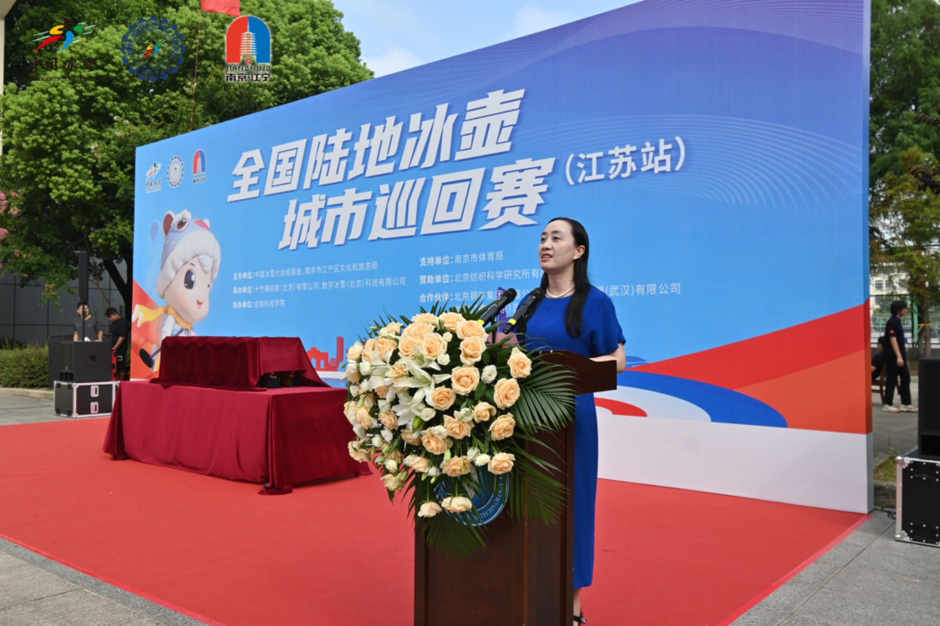 开幕式特邀中国女子冰壶运动员、国际级运动健将、世界冰壶运动比赛冠军刘金莉女士出席。她称赞了陆地冰壶的魅力和江苏的深厚文化底蕴,希望各位运动员的每一次投掷都全力以赴,每一场比赛都全情投入,并预祝本届赛事圆满成功。