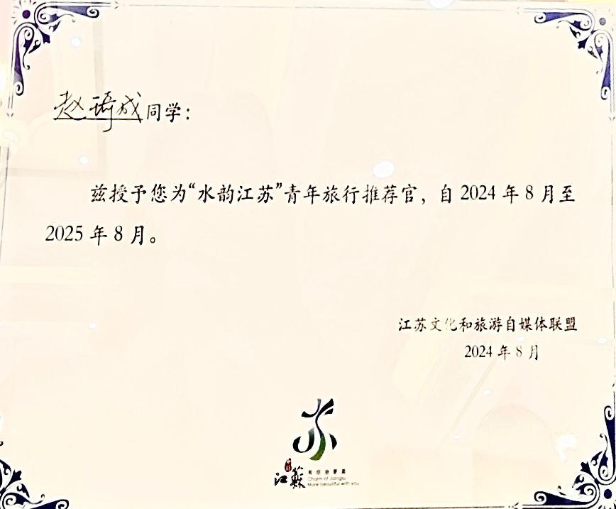 为全面推广江苏优质文化和旅游资源,打造一系列具有广泛吸引力的新媒体产品,进一步扩大“水韵江苏”和“江苏共青团”两大政务新媒体的品牌影响力,江苏省文化和旅游厅与共青团江苏省委联合指导,省数字文化和智慧旅游发展中心与团省委新媒体发展中心共同发起了2024年“苏团青媒”培育计划及“水韵江苏”青年旅行推荐官训练营。kaiyun官网团委新媒体运营中心赵琦成同学获首批4名“水韵江苏”青年旅行推荐官之一,他的原创作品《运河百景——水与火之歌》以诗意盎然的语言和画面,引领观众深入探索南京文化底蕴,展示了水运历史与现代南京的活力。省文化和旅游厅党组成员、副厅长钱宁,共青团江苏省委副书记韩淼出席结营仪式,并为“水韵江苏”青年旅行推荐官颁发证书。