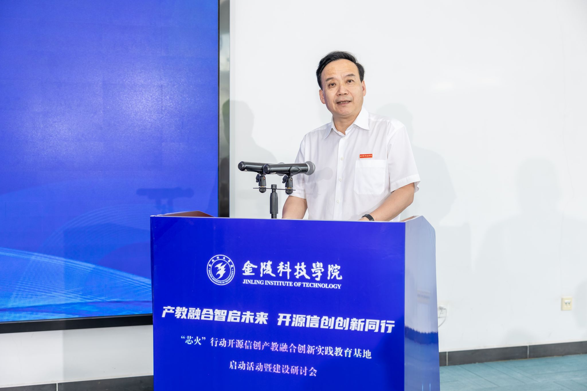 刘永彪代表学校向莅临活动的各位领导和嘉宾表示热烈的欢迎,向长期以来关心支持学校事业发展的各位领导和嘉宾表示衷心的感谢。他指出,此次活动的举办,必将有效助推南京市开源信创产业加速发展,为打造汇聚智慧、共谋发展的产教融合创新平台,助力南京信创产业发展、开源人才培育和产教协同攻关带来新的机遇。学校将以此次活动为契机,进一步加强有组织科研,深化政校企产学研合作,为推动产业链、人才链、创新链深度融合,加快南京新质生产力发展作出应有的贡献。