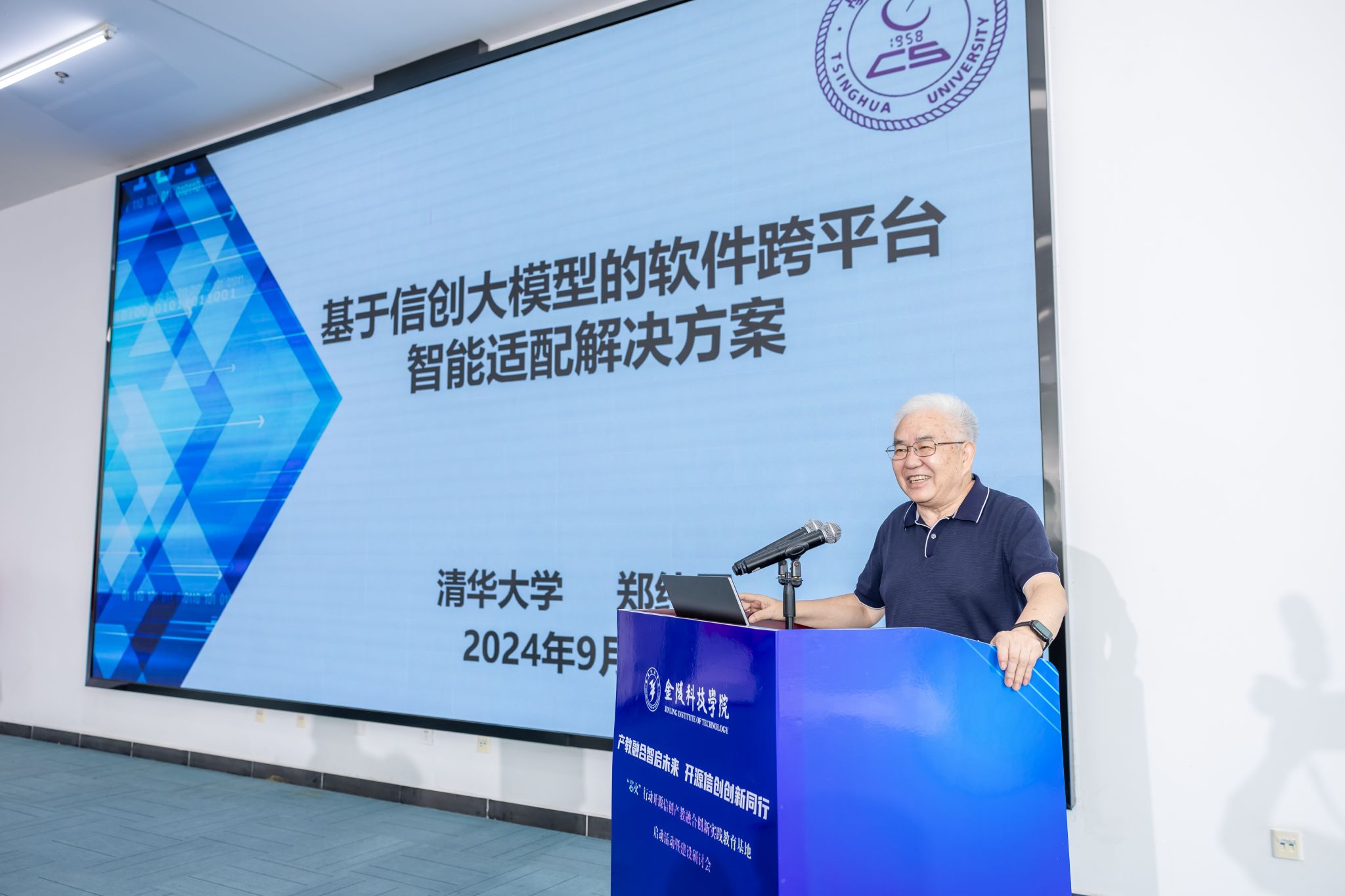 报告环节,郑纬民以《基于信创大模型的软件跨平台智能适配解决方案》为题,提出“信创”目标是建立自己的 IT 底层架构和标准,形成自有开放生态。他认为,建立生态中跨平台优化移植需要解决“识别与平台相关的代码”“针对代码制定适配方案”“通过代码重构落实适配方案”等三个问题,要借助编译技术实现自动化平台相关代码识别,基于人工智能技术,减少方案设计和代码重构过程中的人工介入。