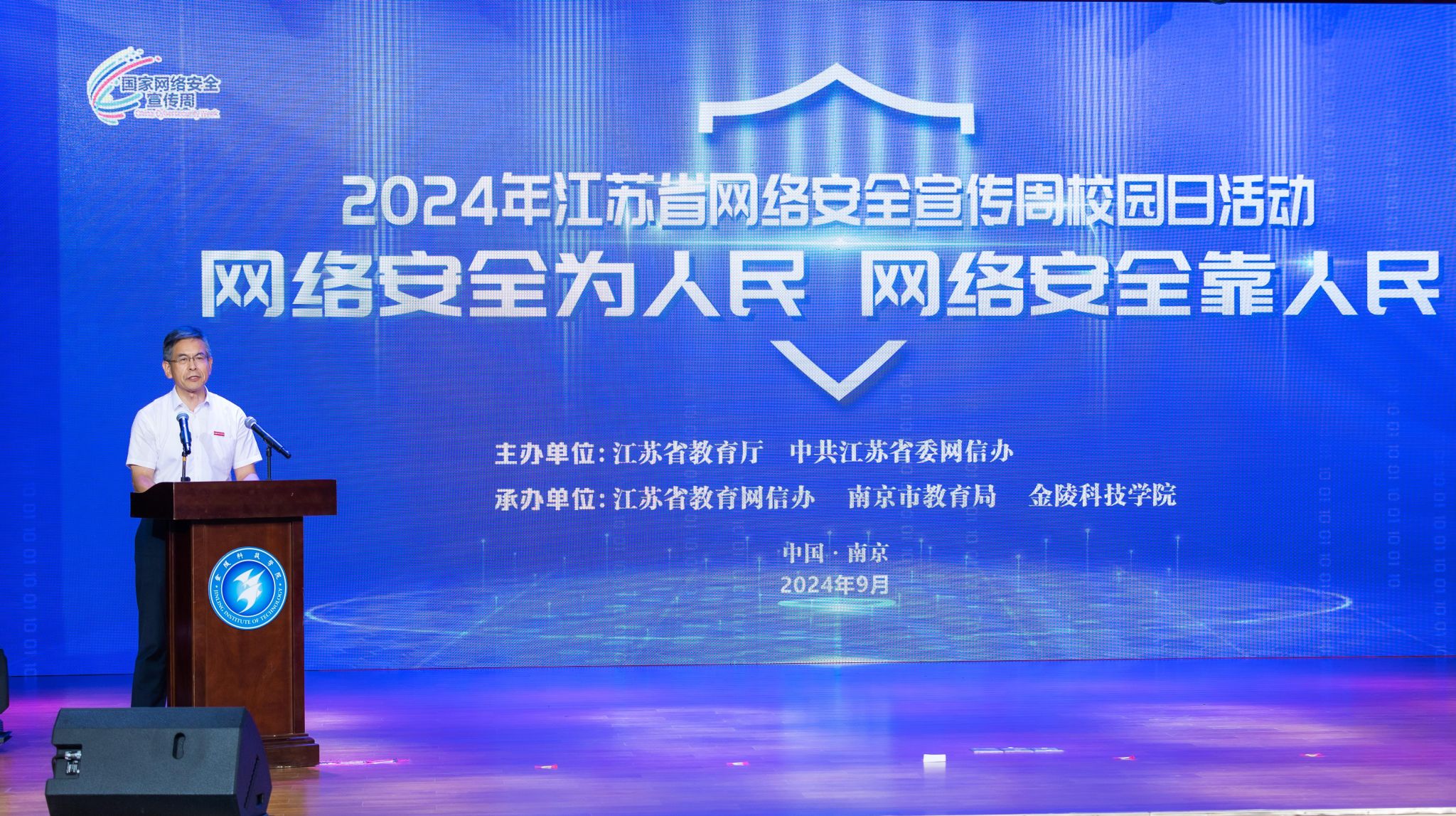 周玖华在主旨讲话中指出,各单位要结合近期召开的全国教育大会和其他重要活动,全面做好网络安全保障工作。他强调,要加强教育宣传,树立大安全观,开展校园防范电信网络诈骗犯罪宣传,推动反诈宣传融入教育教学、校园生活和家校共育全过程,进一步完善覆盖大中小学的安全教育体系;要加强攻防演练,提高网络安全应急处置水平,鼓励广大师生积极参与省教育厅组织的网络安全攻防演练活动;要加强组织领导,完善网络安全组织领导体系,严格落实网络安全工作责任制,层层压实工作责任;要加强协同合作,与网信、公安等部门保持密切联系,及时发现隐患、准确堵塞漏洞。他代表江苏省教育厅预祝2024年全省教育系统网络安全宣传周校园日活动取得圆满成功。