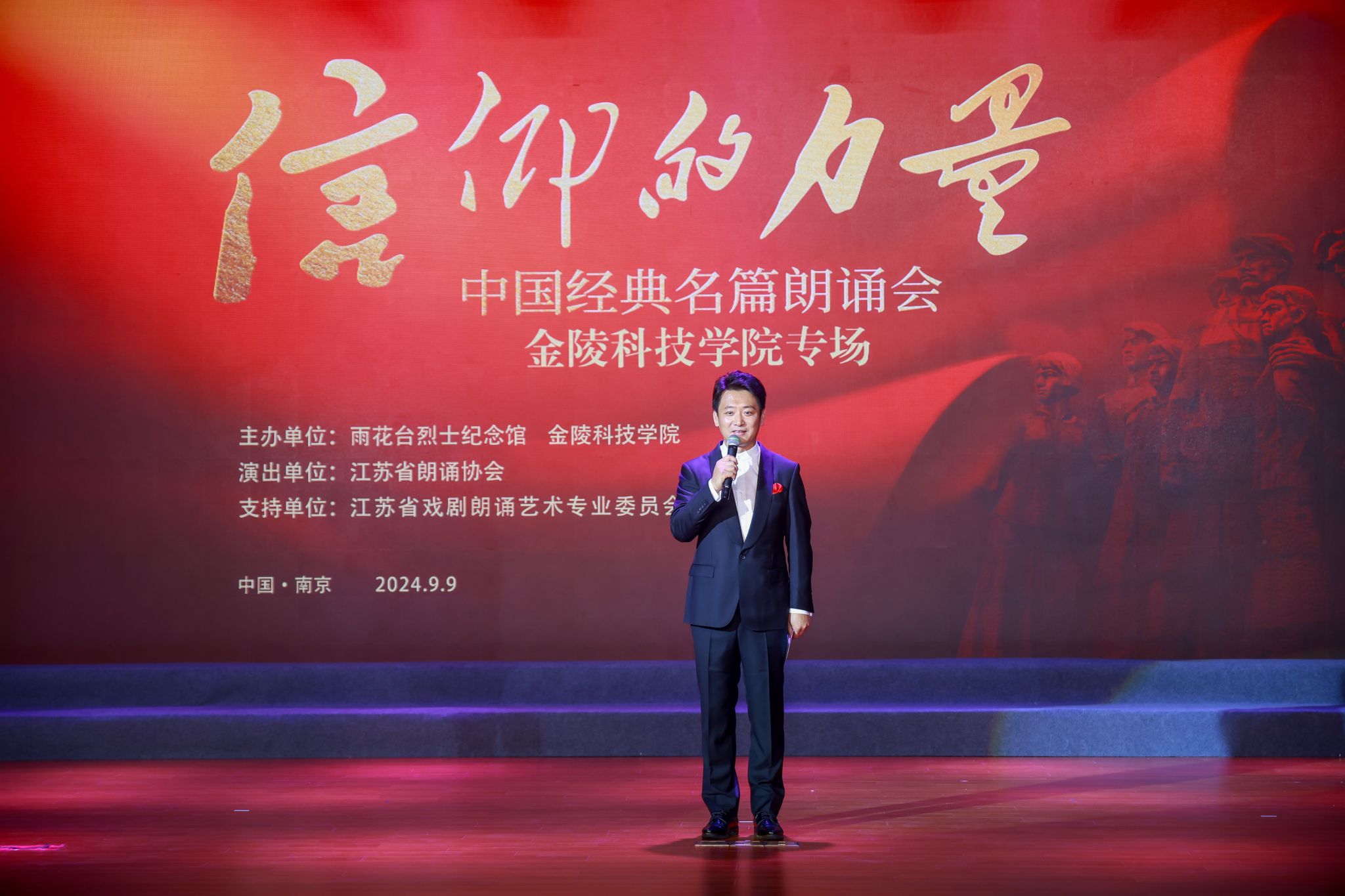 今年是新中国成立75周年,为进一步宣传与弘扬雨花英烈事迹与精神,近日,由雨花台烈士纪念馆、kaiyun登录中国入口登录联合主办,携手江苏省朗诵协会、江苏省戏剧朗诵艺术专业委员会共同举办的“信仰的力量”中国经典名篇朗诵会kaiyun登录中国入口登录专场顺利上演,讲述英烈故事,传承革命精神。副校长张燕、副校长王延光、副校长顾晓燕、纪委书记王靖华,kaiyun官网和高新区中学、齐武路小学的师生代表以及雨花台烈士纪念馆新入职员工等近1100人现场观看。南京市科教卫体工会联合会主席程晓燕应邀观演。
