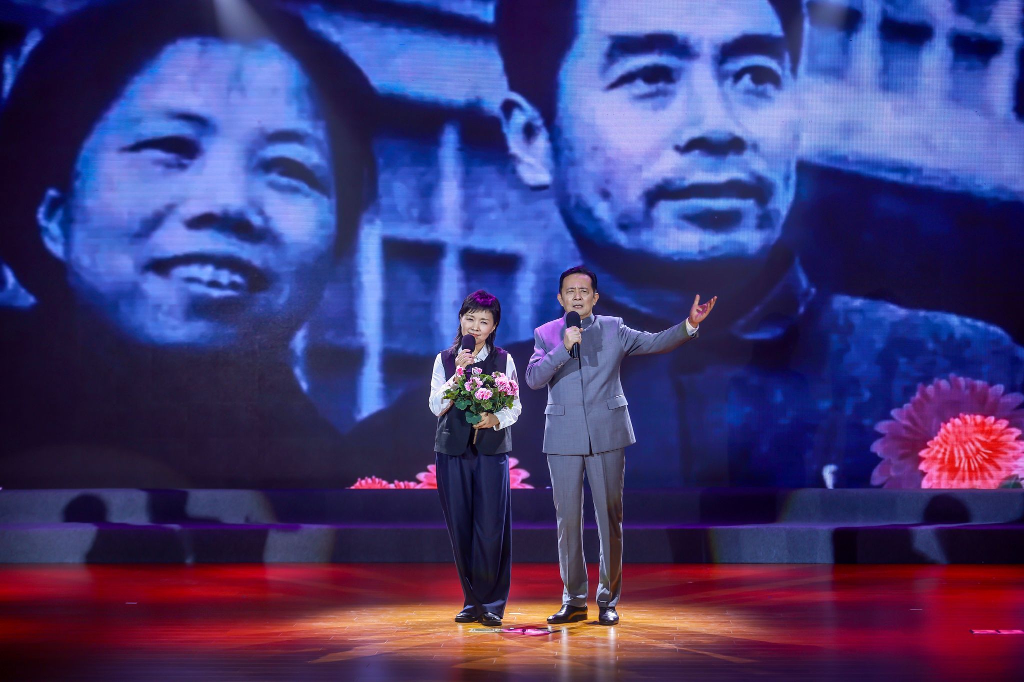 “我应该在烈火和热血中得到永生。”是革命者叶挺的信仰,“人,不能低下高贵的头。”是革命者陈然的信仰,“为什么我的眼里常含泪水?因为我对这土地爱得深沉。”是诗人艾青的信仰。在第二章节,朗诵家们慷慨激昂地诵读《我》《囚歌》《我的自白书》《我爱这土地》《胜利》,热烈真挚的情感铿锵有力地砸入观众的心底,将整场演出氛围推向高潮。歌曲《祖国不会忘记》更是带着现场观众重回那个革命理想高于天的激情年代。