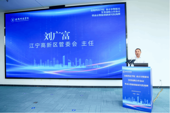 刘广富对战略合作协议签约以及南京数据创新研究院揭牌表示衷心祝贺。他表示,江宁区抢抓数字经济发展机遇,围绕南京争创全球一流数字经济名城目标,以打造国家级“元宇宙创新应用先导区”为抓手,加快数字产业强链补链,提升产业发展能级,取得了丰硕的成果。希望三方共同努力,充分释放南京数据创新研究院在数据人才培养、数据要素创新研究等领域的创新能力和资源优势,成为区域数字经济发展的智囊团和技术创新的新高地,早日出成果、出示范、出效益,为南京乃至全国数字经济发展贡献积极力量。