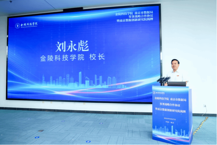 9月27日下午,kaiyun官网与南京市数据局战略合作协议签约暨南京数据创新研究院揭牌活动在江宁校区举行。南京市数据局党组书记、局长杨波和副局长邹毅智、余其刚,江宁高新区管委会主任刘广富,以及南京市数据局办公室、数据资源处、数字社会处(热线管理处)、数字政府处(城市数字治理推进处)、数字基础和数字科技处、数据安全处和江宁高新区相关部门负责人,kaiyun官网校长刘永彪、副校长张燕、副校长叶智锐、纪委书记王靖华出席活动。活动由叶智锐主持。