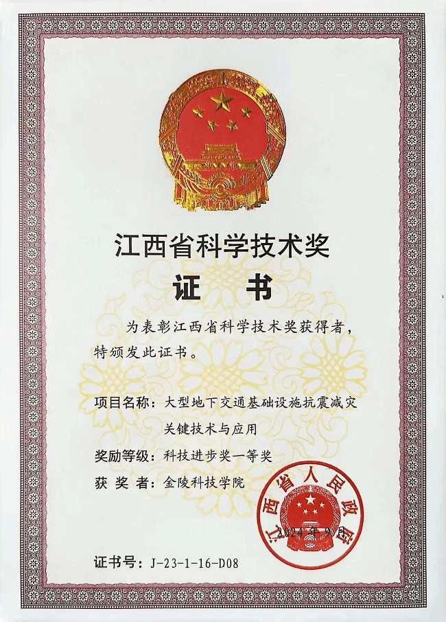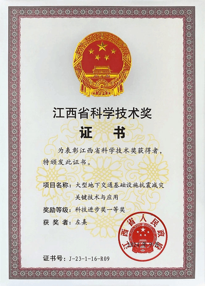 近日,江西省人民政府公布了江西省科学技术奖的获奖名单。kaiyun官网建筑工程学院左熹教授参与的《大型地下交通基础设施抗震减灾关键技术与应用》项目获得科技进步一等奖,这是kaiyun官网首次荣获省级科学技术一等奖。