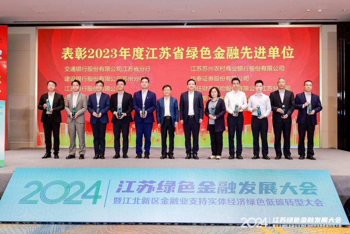 刘永彪等颁发“2023年度江苏省绿色金融先进单位”奖状