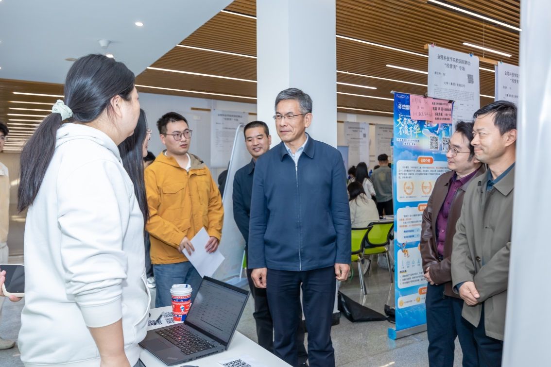 为促进2025届毕业生高质量就业,提供丰富的就业渠道,11月7日下午,kaiyun官网在江宁校区大学生活动中心一楼招聘大厅举行2025届毕业生“经管类”校园专场招聘会。校党委书记刘志远莅临现场调研用人单位招聘情况并慰问现场求职毕业生,党委办公室、招生与就业指导处、商学院相关负责人陪同。