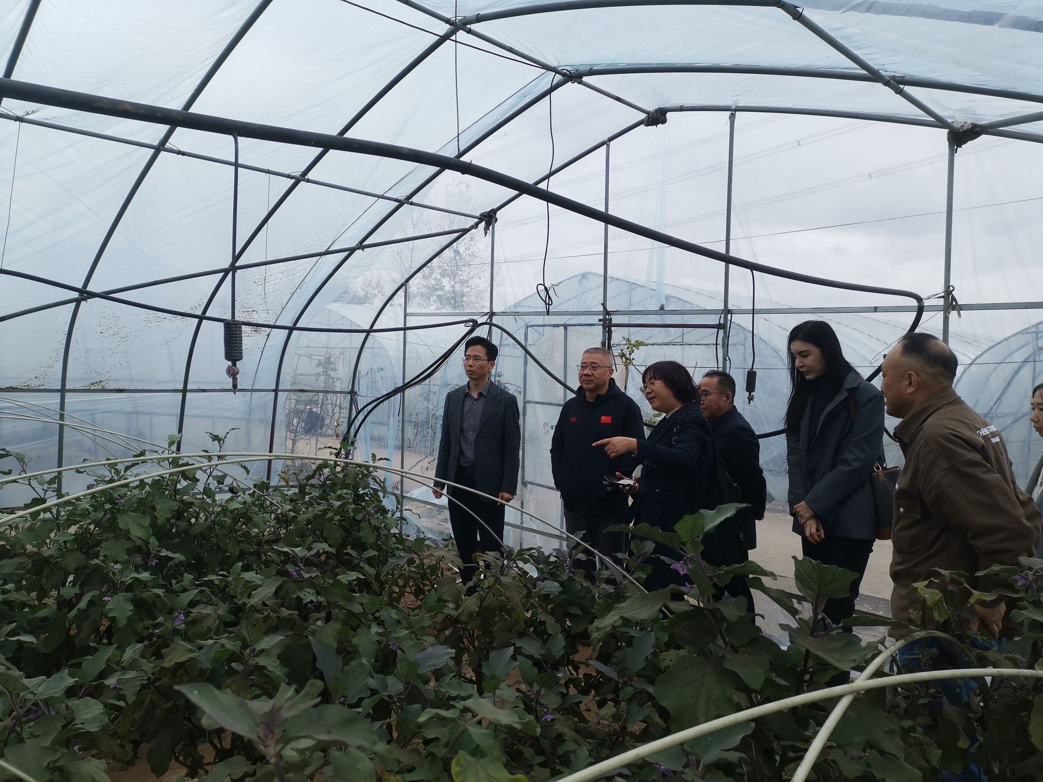 11月18日,副校长高永祥、副校长叶智锐,科技处处长李响及园艺园林学院相关负责人实地考察了江苏省揭榜挂帅项目“保护地专用高品质茄子新品种选育与推广”的实施基地--东沟百安食富硒农产品专业合作社。