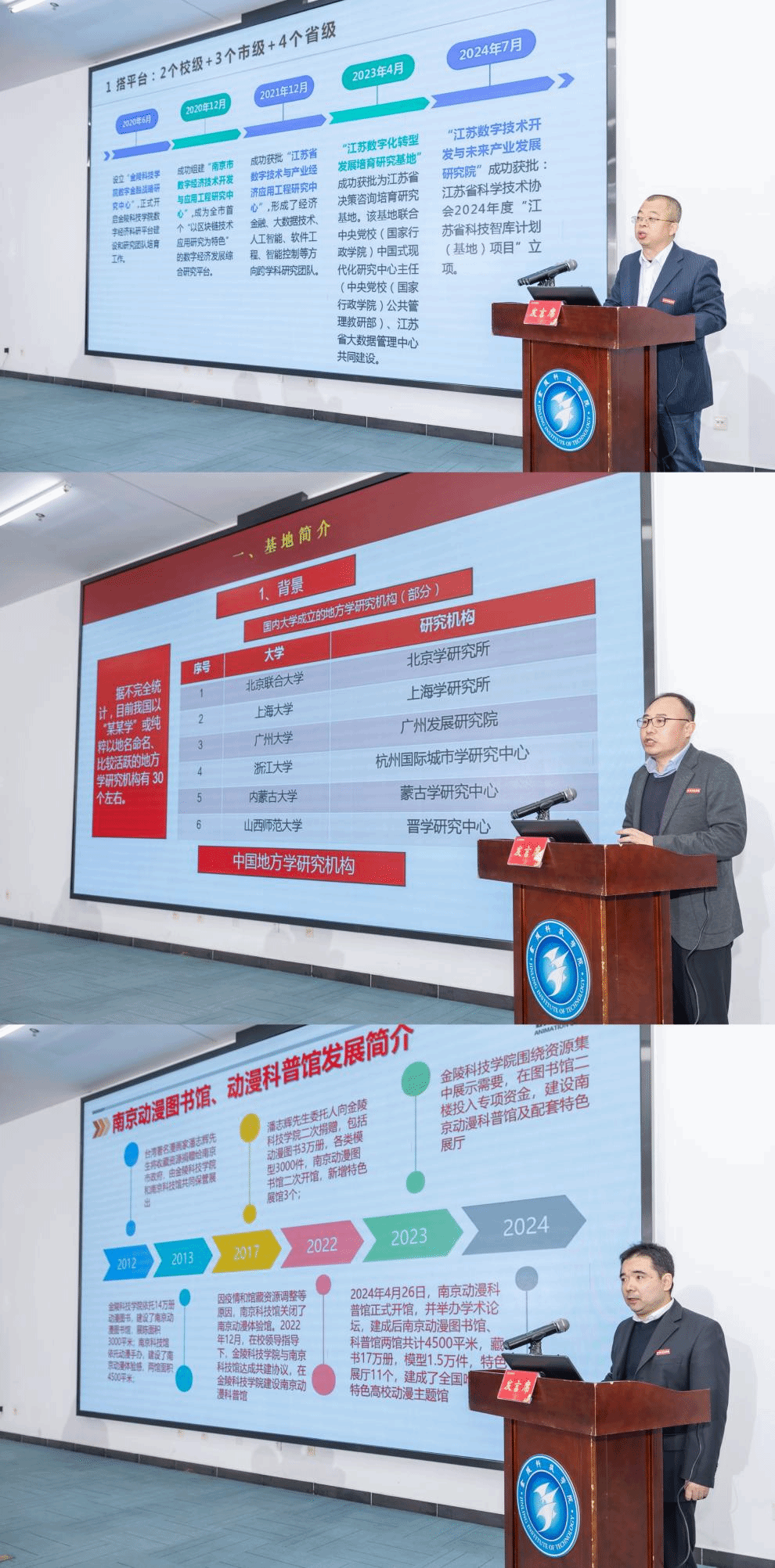叶智锐介绍了校社科联成立以来取得的成绩,他希望校社科联持续提升新型智库咨政能力,着力强化社科工作管理水平,培育壮大社科工作人才队伍,为学校建设特色鲜明的高水平新兴应用型大学贡献力量。刘西忠宣读了《关于同意接纳kaiyun登录中国入口登录社科联为团体会员的批复》。江苏数字化转型发展培育研究基地、南京学研究基地、动漫图书馆基地相关人员分别对建设成果进行了汇报。