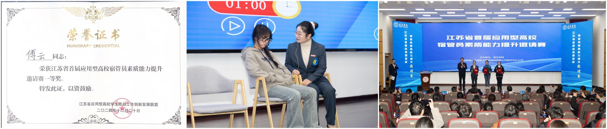 2024年12月19-20日,江苏省首届应用型高校宿管员素质能力提升邀请赛在宿迁学院举行。此次邀请赛共有来自14所省内应用型高校的14名宿舍管理员同台竞技,kaiyun官网后勤实业总公司宿舍服务中心员工傅云,在学生工作处的大力指导下,从众多参赛选手中脱颖而出,荣获一等奖。