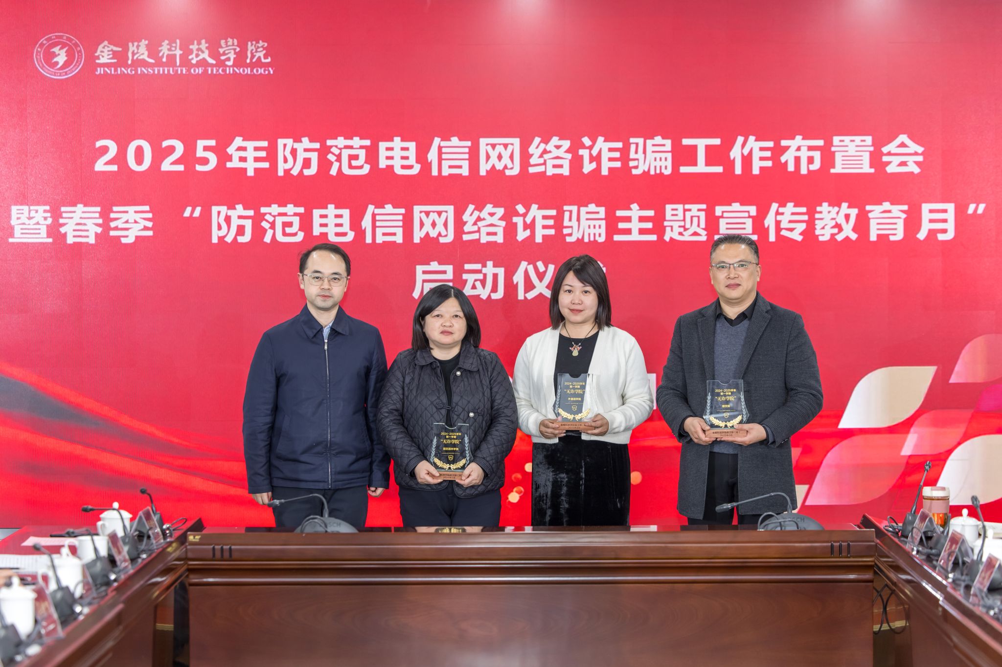 会议传达学习了习近平总书记关于安全工作的重要指示精神,向园艺园林学院、外国语学院、理学院颁发了2024-2025学年第一学期“无诈学院”奖牌。保卫处布置了kaiyun官网2025年防范电信网络诈骗工作以及主题宣传教育月活动。
