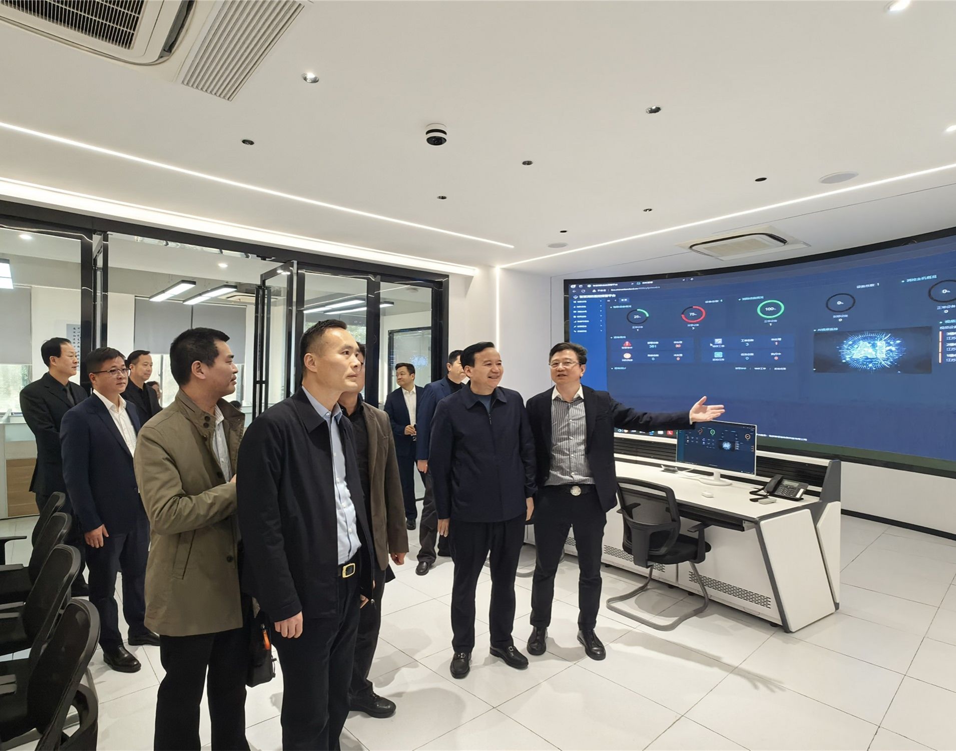 徐剑峰陪同刘永彪一行参观了集团展厅和智慧消防展厅。双方围绕应用型人才培养、研究生工作站建设、科研攻关、成果转化、产业学院建设、实习就业等方面进行深入探讨,并达成初步合作推进方案。