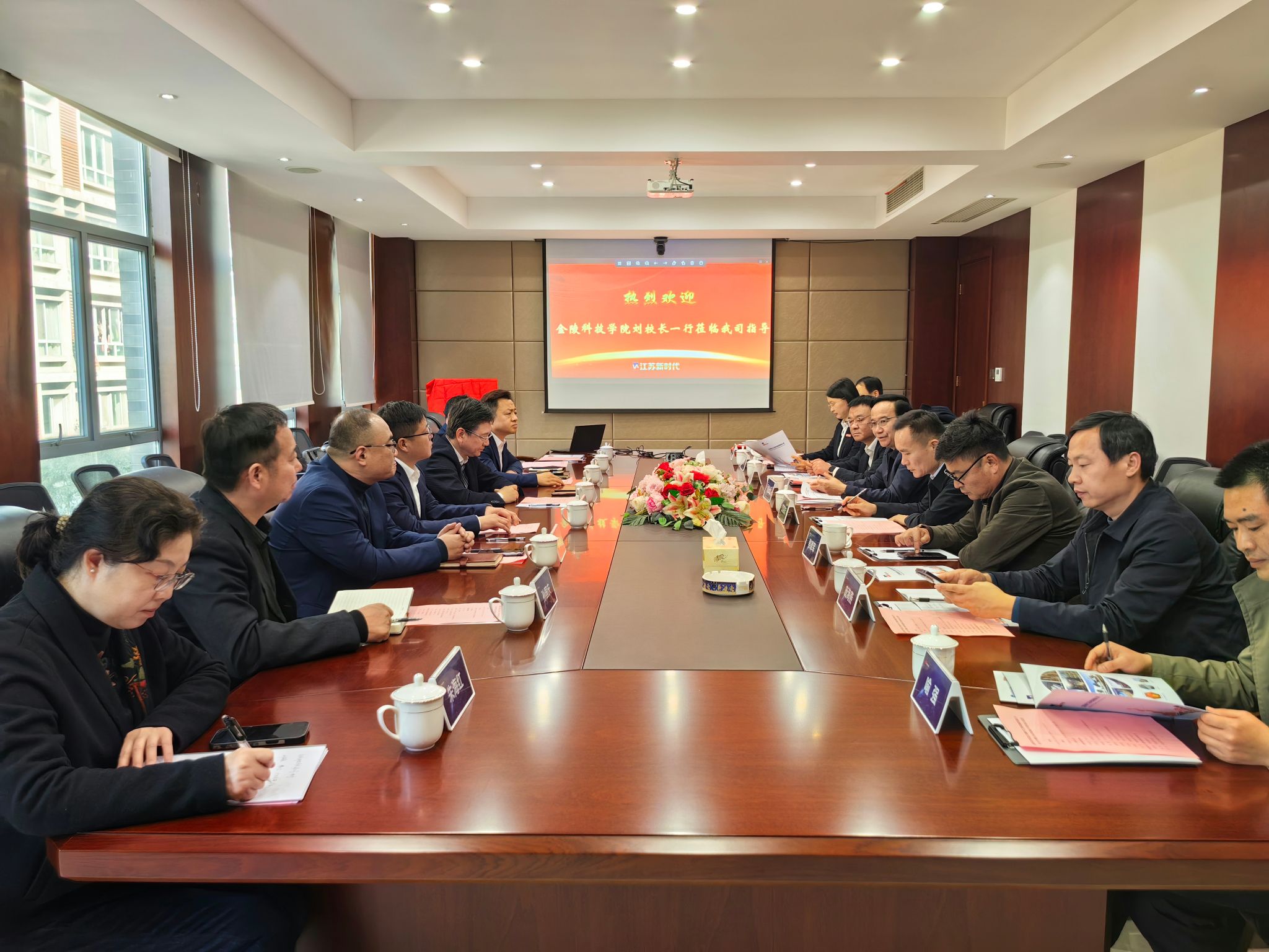 3月20日,校长刘永彪带领副校长王延光及校长办公室、合作与发展规划处、招生与就业指导处、保卫处、智能科学与控制工程学院、建筑工程学院相关负责人赴江苏新时代工程科技集团有限公司开展合作洽谈暨访企拓岗促就业专项活动。集团董事长徐剑峰、总经理徐林等接待了刘永彪一行。