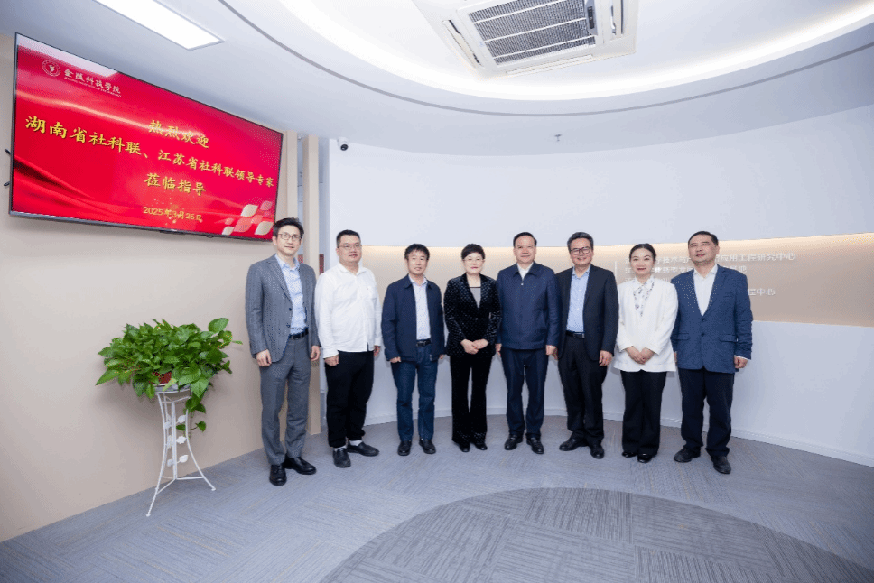 3月26日上午,湖南省社科联党组成员、副主席、秘书长(兼)贺建湘,江苏省社科联党组成员、副主席刘西忠等一行莅临kaiyun官网,调研新型智库平台建设工作。kaiyun官网新型智库负责人刘永彪教授,科技处、商学院相关负责人,江苏省数字技术与产业经济应用工程研究中心、江苏数字化转型发展研究基地、长江双碳经济发展研究院等智库教师代表参加会议。