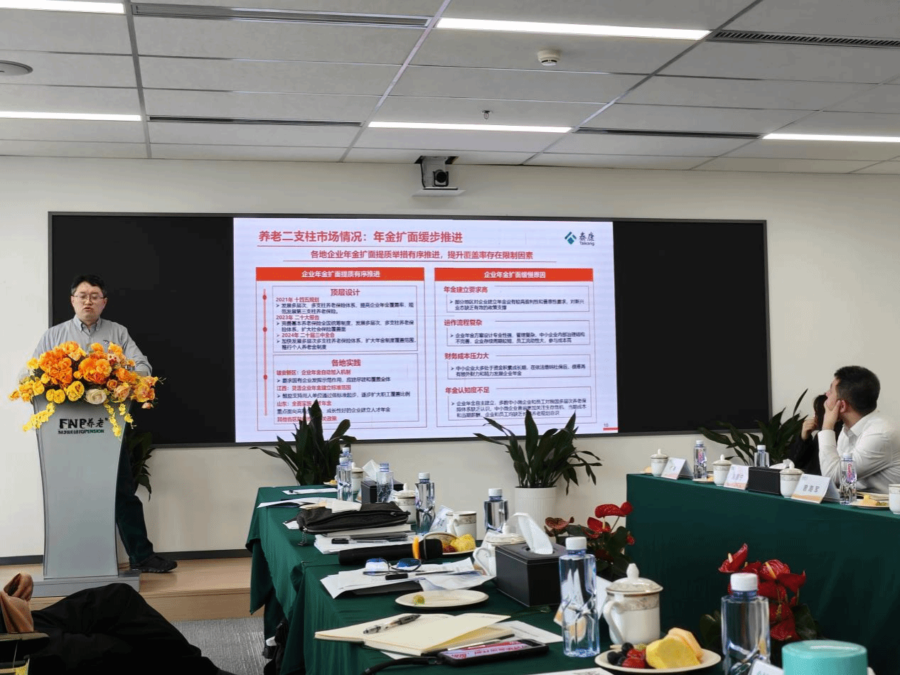泰康养老集团市场企划部副总经理刘方涛作主旨报告。刘永彪在致辞中对出席本次养老金融座谈会的相关企业、学会以及政府部门代表表示感谢。他指出,当前我国正快速步入深度老龄化社会,这一人口结构的巨大转变不仅对我国的社会养老保障体系构成了前所未有的挑战,同时也对医疗保障、社会创新能力和社会整体活力产生了深远影响。面对人口老龄化的加剧,必须高度重视并切实做好养老金融这篇大文章,这既是贯彻落实党的二十届三中全会和中央金融工作会议精神的重要体现,也是响应党的十九届五中全会上明确提出的“积极应对人口老龄化”国家战略的重要举措。他强调,教材编写需立足“服务国家战略、回应民生关切”的指导思想,构建具有中国特色的养老金融理论体系,为健全“三支柱”养老保险制度提供智力支撑。