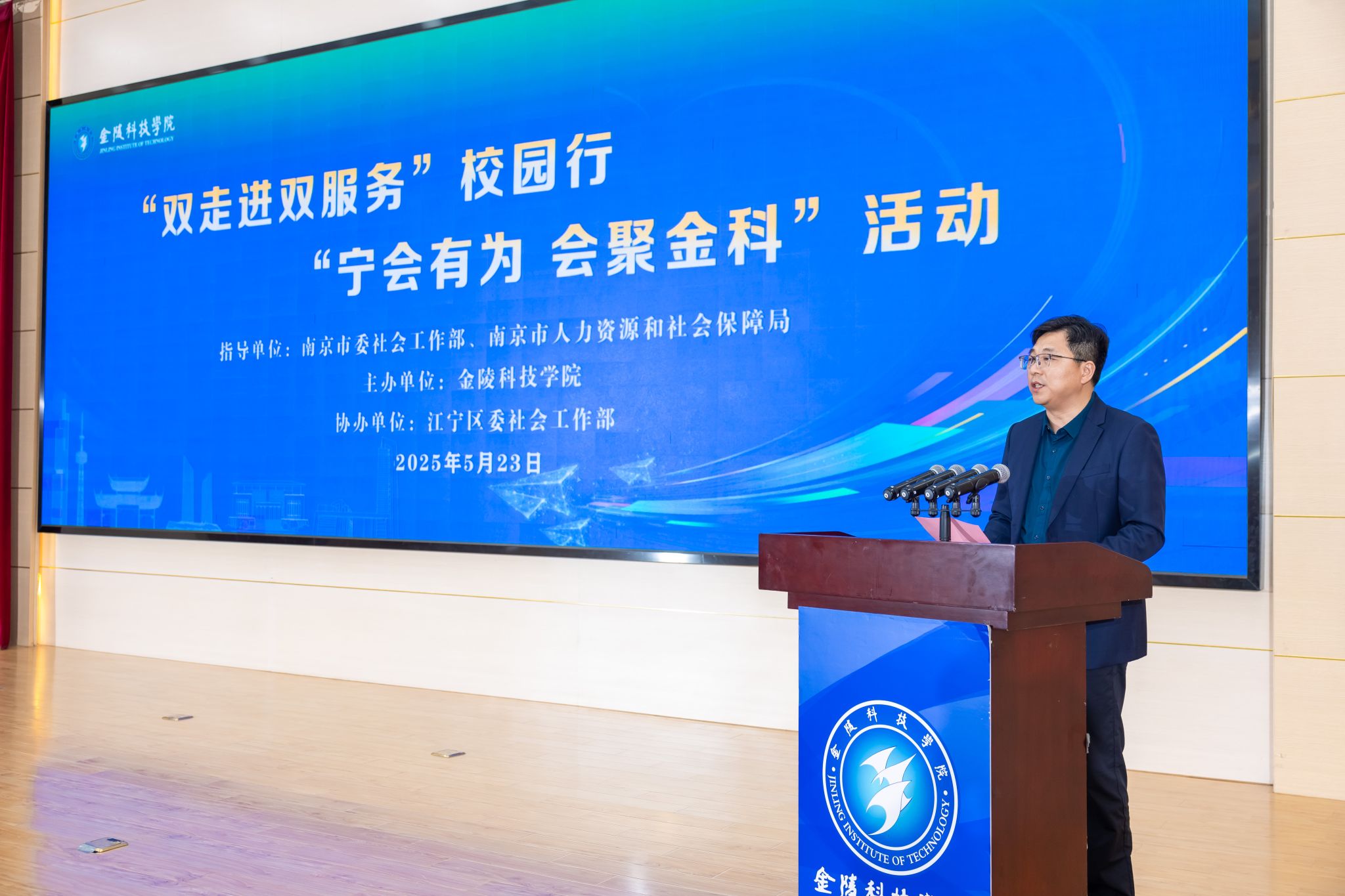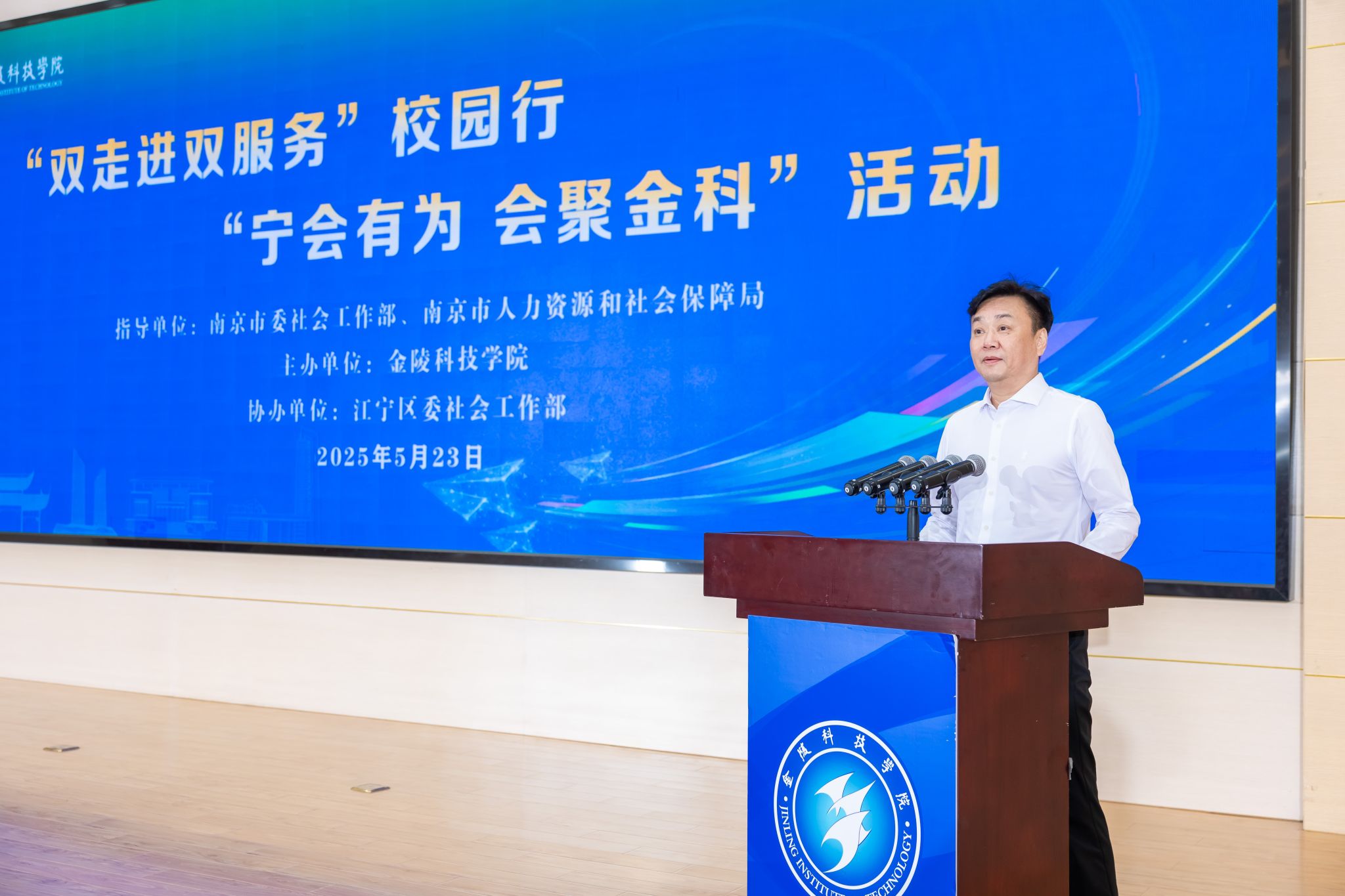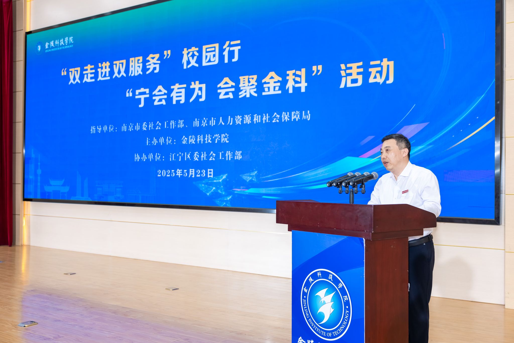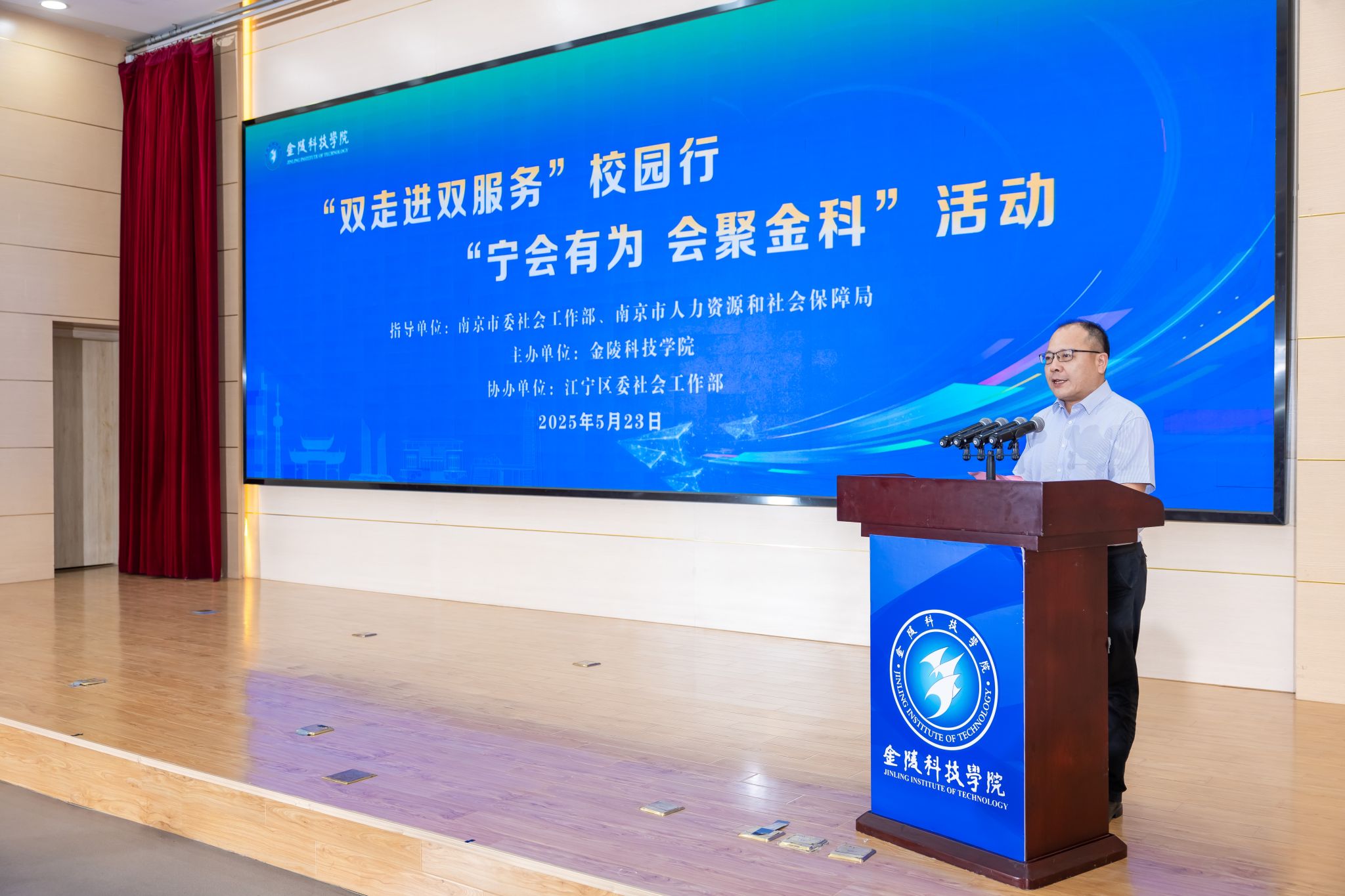 季赛代表学校致欢迎辞。他表示,学校始终坚持“需求导向,能力为本,知行合一,重在创新”的人才培养理念,不断深化产教融合、校企合作,积极创新人才培养模式,切实培养适应地方经济社会发展需要的高素质应用型人才。他强调,“双走进双服务”校园行——“宁会有为 会聚金科”活动是学校贯彻落实习近平总书记“就业是最基本的民生”和党的二十届三中全会“深化教育科技人才体制机制一体改革”精神的重要举措,不仅为学校2025届毕业生提供了宝贵的就业机会,也为学校精准了解南京产业布局、把握市场需求打开了新的窗口,更为企业与学校之间开展更深层次的产学研合作创造了条件。学校与行业协会商会深度融合,共同打造“高校智力支撑+行业资源整合+产业转型升级”发展共同体,必将进一步助力毕业生高质量充分就业,推进学校“南京化体系战略”落地落实,深化产教融合发展,推动学校江苏省一流应用型本科高校建设,服务南京经济社会高质量发展。