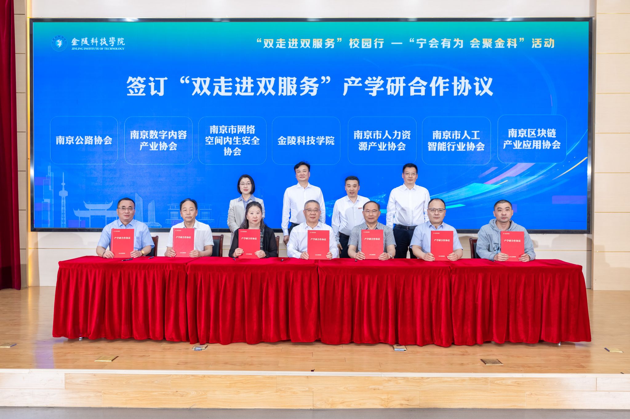 在赵小兵、丁雪、刘春明和季赛的见证下,高永祥代表学校与南京市人工智能行业协会、南京市互联网协会、南京区块链产业应用协会、南京市人力资源产业协会等12家行业协会商会代表签订了产学研合作协议。顾晓燕代表学校向南京工艺美术行业协会、南京交通工程有限公司、数贸云江苏科技有限公司、江苏智慧产教融合研究院、江苏欧帝电子科技有限公司、南京凯莱智能服饰有限公司等26家“kaiyun登录中国入口登录校外实习基地”授牌。