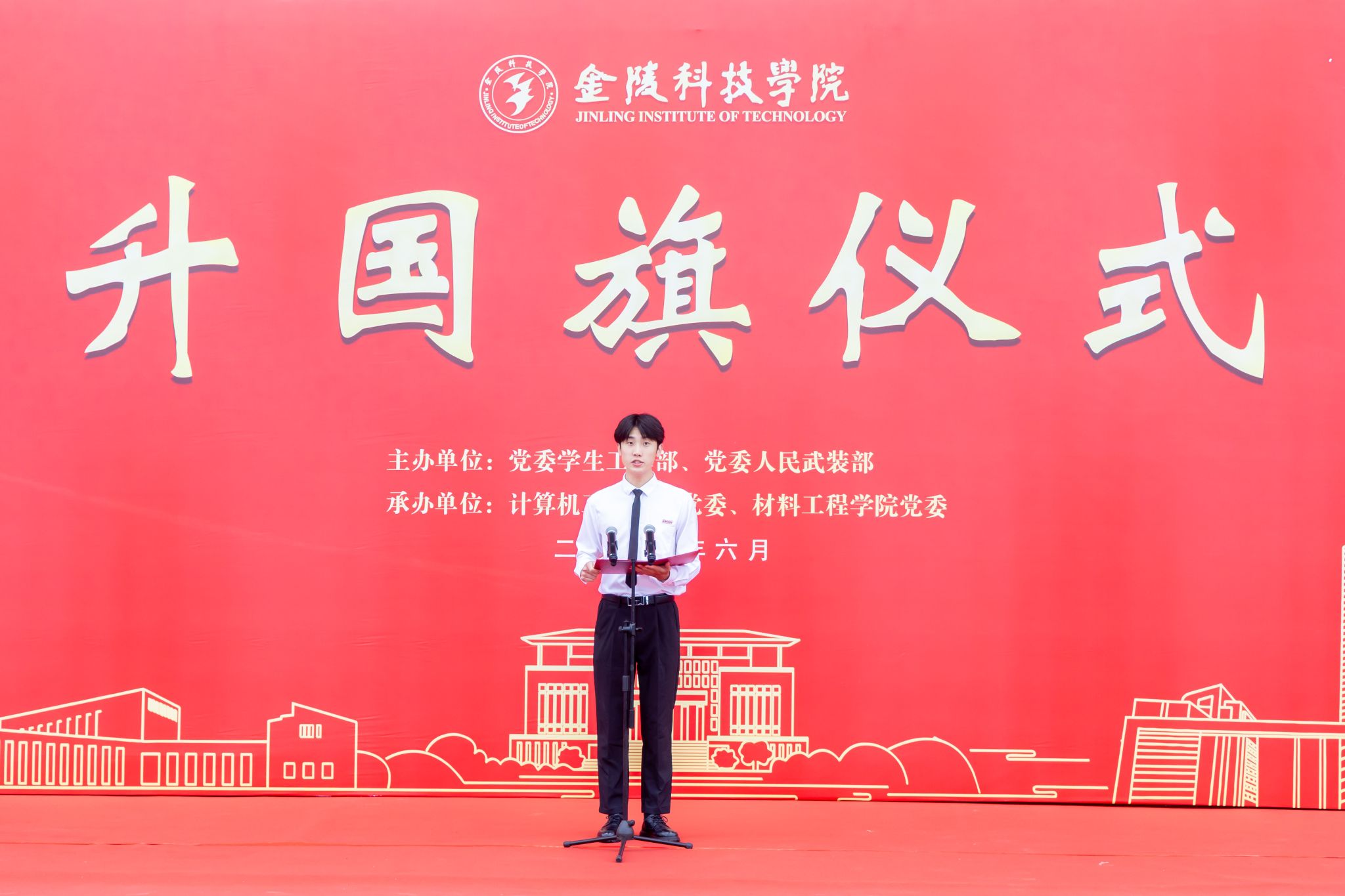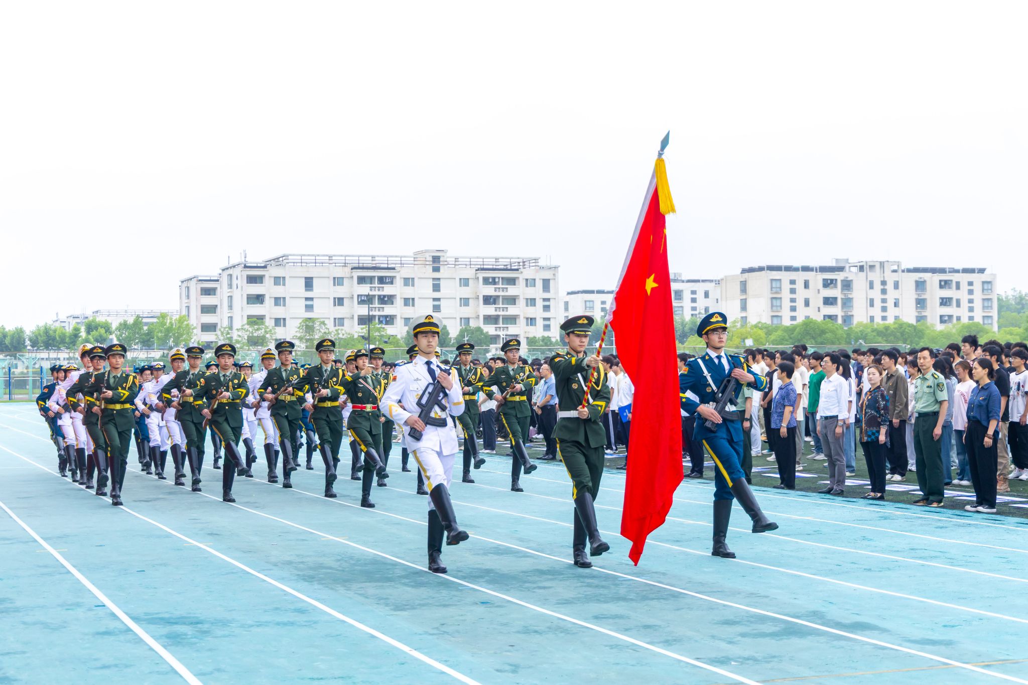 6月9日清晨,kaiyun官网1800余名师生齐聚江宁校区北区田径场举行升国旗仪式,共上“国旗下的思政课”。校长季赛及党委学生工作部、党委人民武装部、计算机工程学院、材料工程学院师生参加仪式。升国旗仪式由党委学生工作部、党委人民武装部主办,计算机工程学院党委和材料工程学院党委承办。