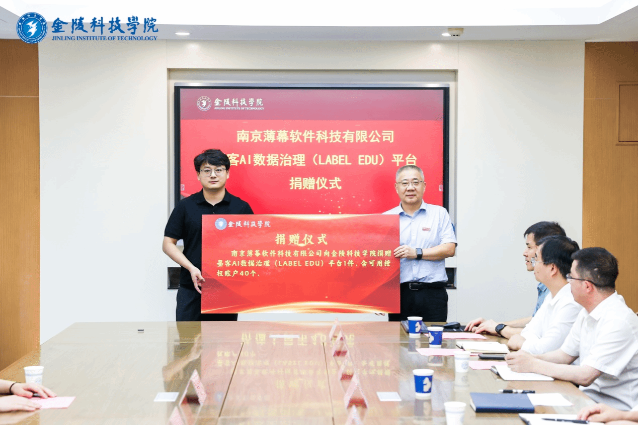 6月21日,软件工程学院在行政楼240会议室举行校友企业南京薄幕软件科技有限公司向母校捐赠“墨客AI数据治理(LABEL EDU)平台”仪式。校党委书记刘志远、副校长高永祥,南京薄幕软件科技有限公司总经理任远东(2015级校友),南京薄幕软件科技有限公司执行技术总监李海洋(2015级校友),校友办公室负责人及软件工程学院领导班子成员和师生代表参加活动。