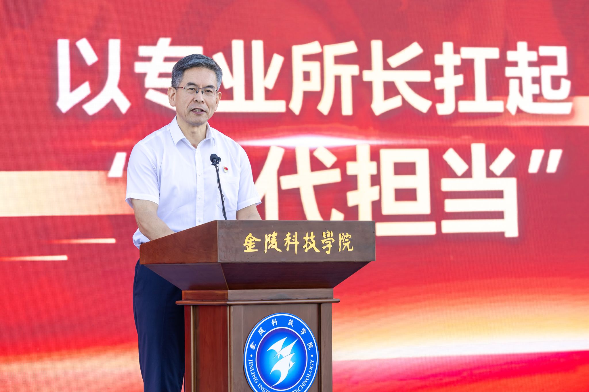 刘志远以《以国防铸魂 以校史铸志 以奋斗铸青春》为题为新生上“开学第一课”,他从纪念中国人民抗日战争暨世界反法西斯战争胜利80周年阅兵式谈到对国家发展的思考感悟,从电影《南京照相馆》谈到南京的城市记忆,从金科校史传承谈到个人时代担当,并对同学们提出三点期许:一是要“知史明责”,从历史深处读懂“家国大义”。希望同学们从国家的历史中汲取中华民族坚韧不屈的精神,将个人发展融入国家复兴大业之中;从南京的历史中读懂不屈与抗争,铭记这座城市承载的厚重记忆,传承英雄城市的红色基因;从校史中感悟学校发展脉络,找到前行“方位”和“航向”。二是要“笃行实干”,以专业所长扛起“时代担当”。希望同学们少一些“躺平”的抱怨,多一些“奋斗”的行动,少一些“功利”的计较,多一些“实干”的追求,在实验室里潜心攻关,在企业实习中积累经验,在志愿服务中增长见识,让自己的专业所长成为服务家国的“硬本领”。三是要“立心铸魂”,以军训为起点涵养“精神品格”。希望同学们在军训的严格纪律中学会自律与坚持;在集体协作中懂得团结与互助,让军训的每一滴汗水都化作滋养精神品格的养分。在未来的日子里,无论面对何种挑战,都能以坚韧不拔的意志、积极向上的态度去应对,真正成为有理想、有道德、有文化、有纪律的新时代青年。