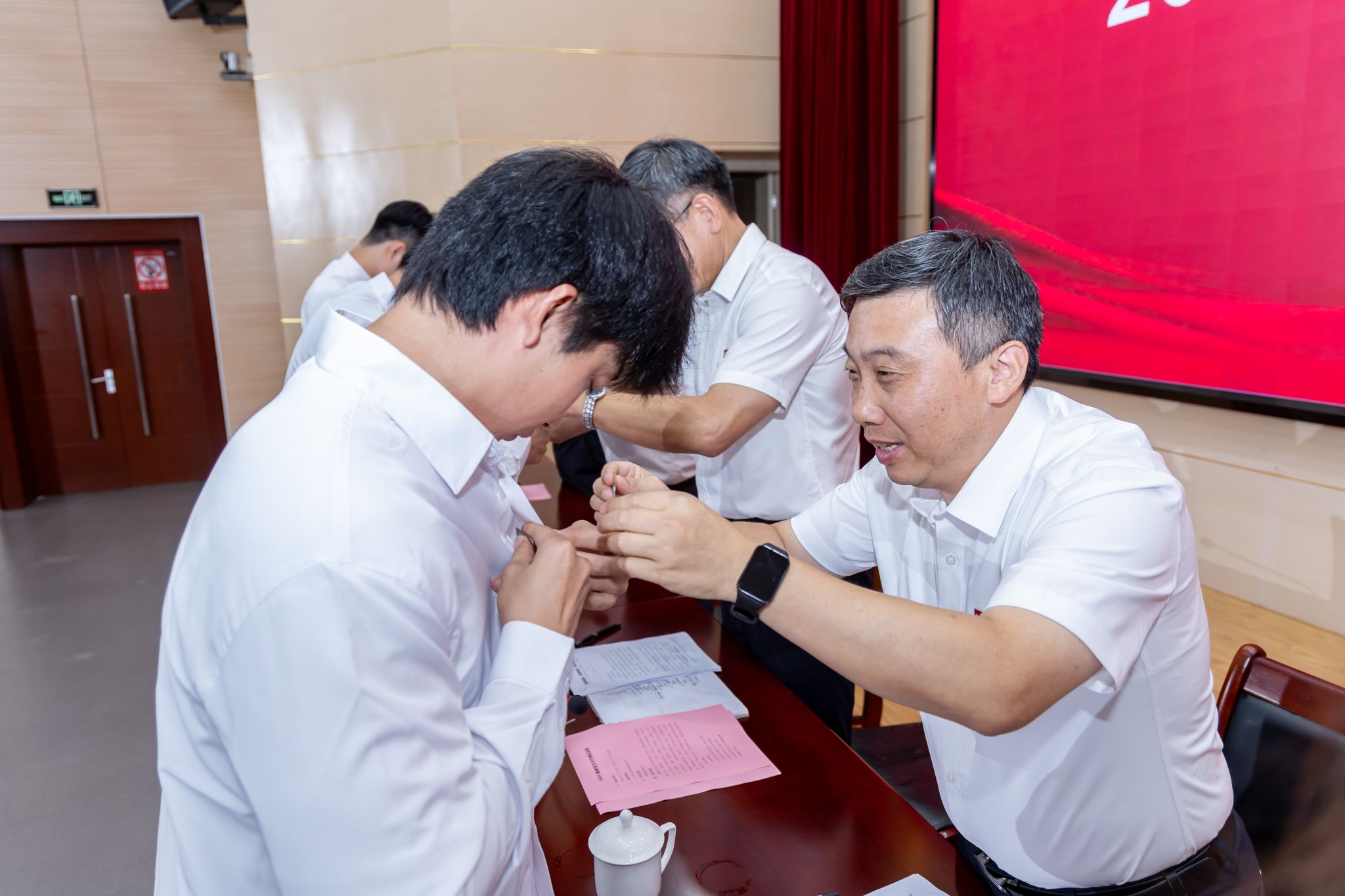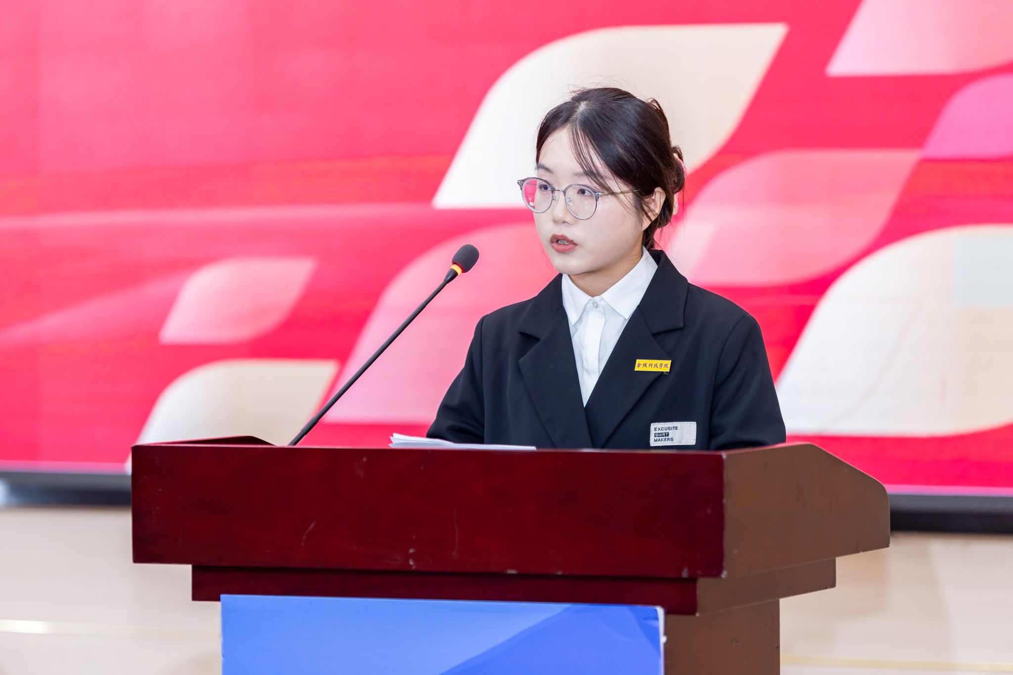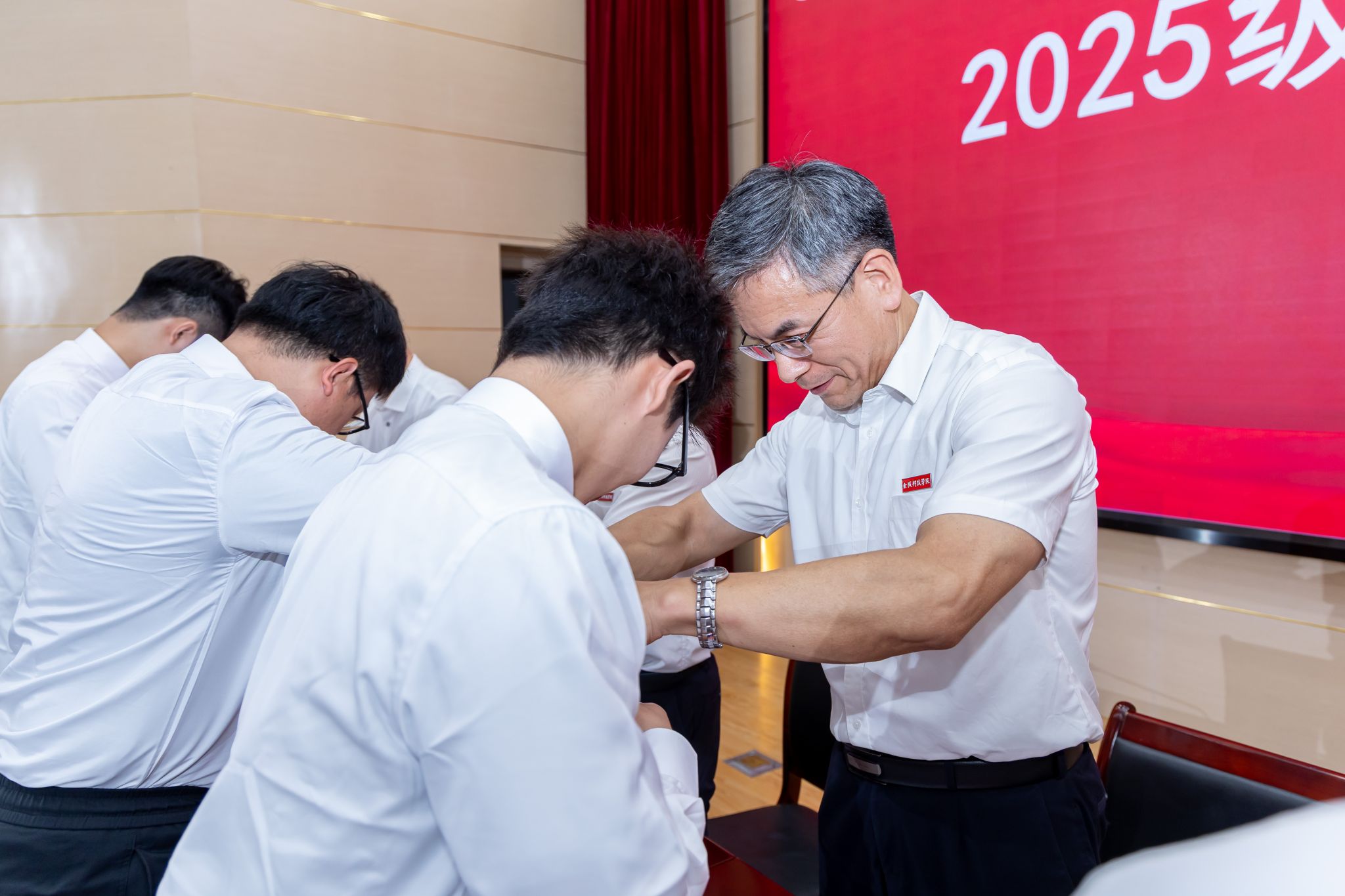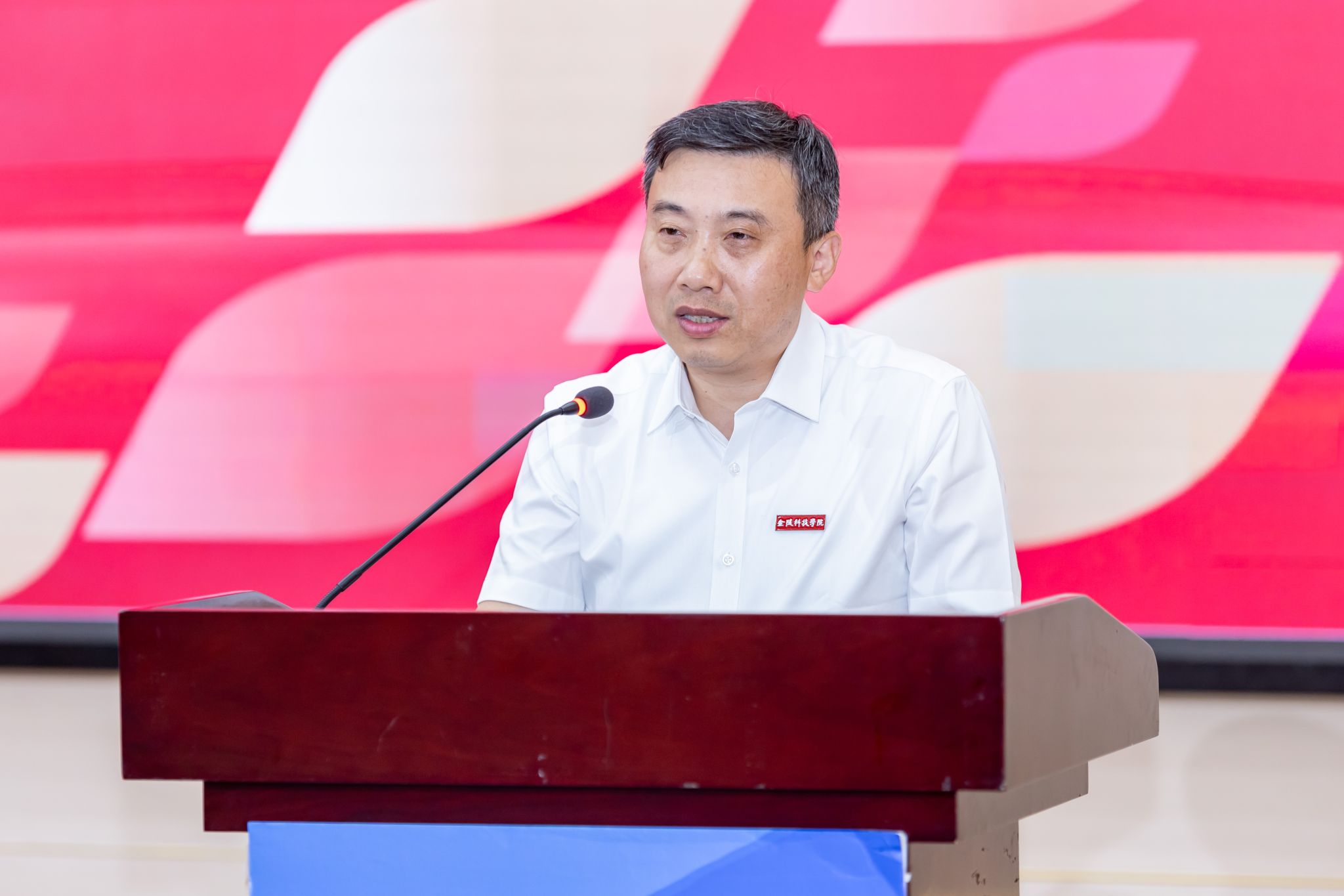 开学典礼在庄严的国歌声中拉开帷幕。研究生导师代表苏慧教授分享了自己的科研经历,向新生提出了学习建议,鼓励大家以永不言败的精神积极创新,破茧成蝶。电子信息专硕点吴文静同学作为在校生代表发言,她与新生分享了个人的学习、生活和科研经验,勉励大家珍惜青春时光,在研究生阶段不断拓宽视野、丰富阅历。农业专硕点翟鹏宇同学作为新生代表发言,他向在座各位师长、同学展望了成长愿景,期待自己能在金科院这片沃土上继续锤炼专业本领,书写卓越篇章。典礼上,校领导为新生代表佩戴了校徽。