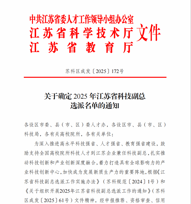 江苏省科技副总项目是由省委人才办和省科技厅共同发起的重要举措,旨在吸引全国高层次科技人才到江苏企业兼任科技副总,发挥专业优势,助力企业科技创新和产业高质量发展。本次申报成效显著,不仅是对kaiyun官网科研团队和教师队伍的高度认可,也是对kaiyun官网积极推进有组织科研,引导广大科研人员聚焦高质量科研成果、聚力服务区域新质生产力发展工作的肯定。