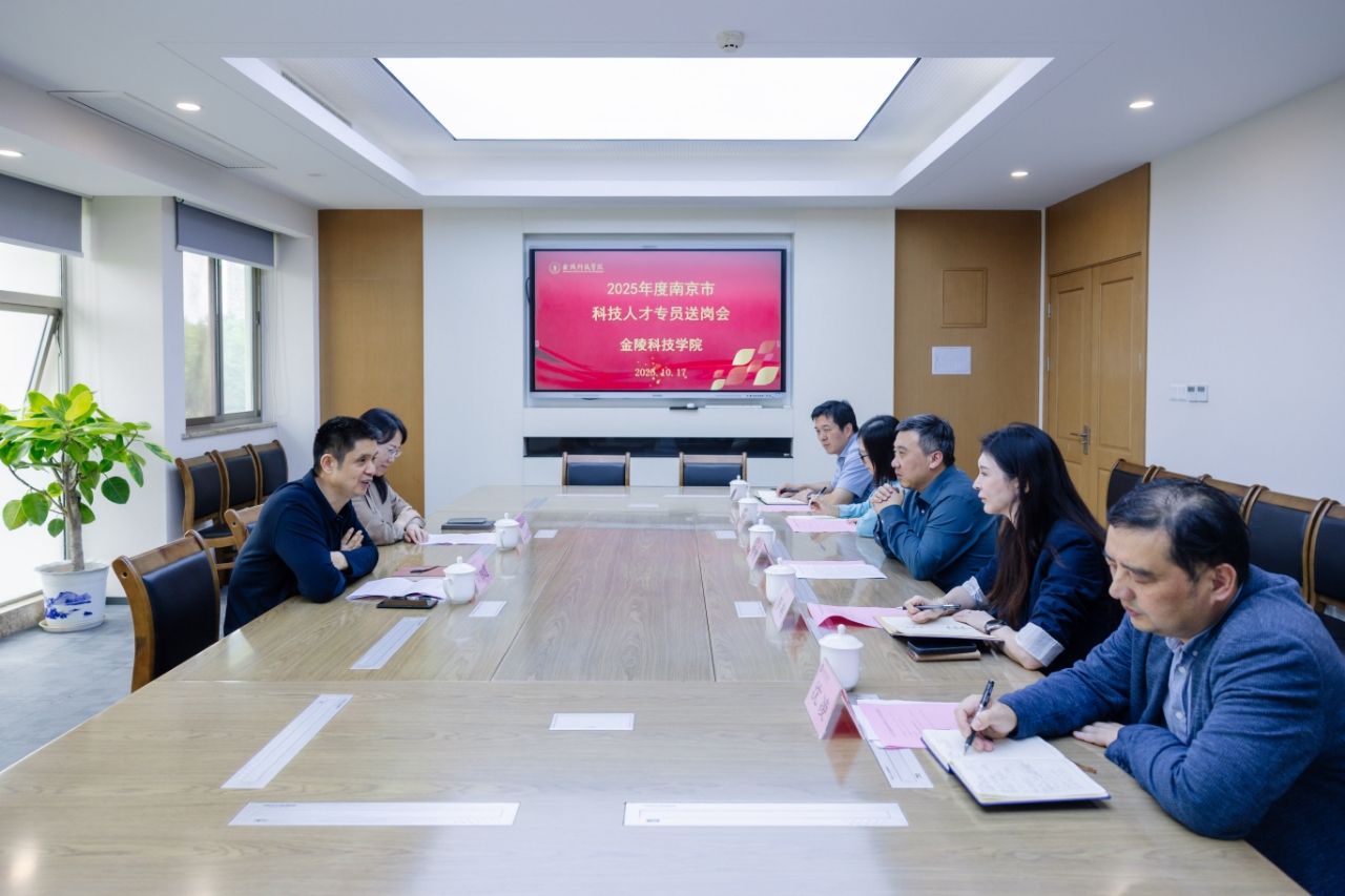 2025年10月17日,kaiyun官网举行南京市科技人才专员送岗交流会,南京东南国资投资集团有限责任公司党委副书记、董事刘妙雄,南京市驻kaiyun官网科技人才专员、南京东南国资投资集团有限责任公司党群工作部副部长刘菲菲来校送岗交流。校长季赛出席会议。