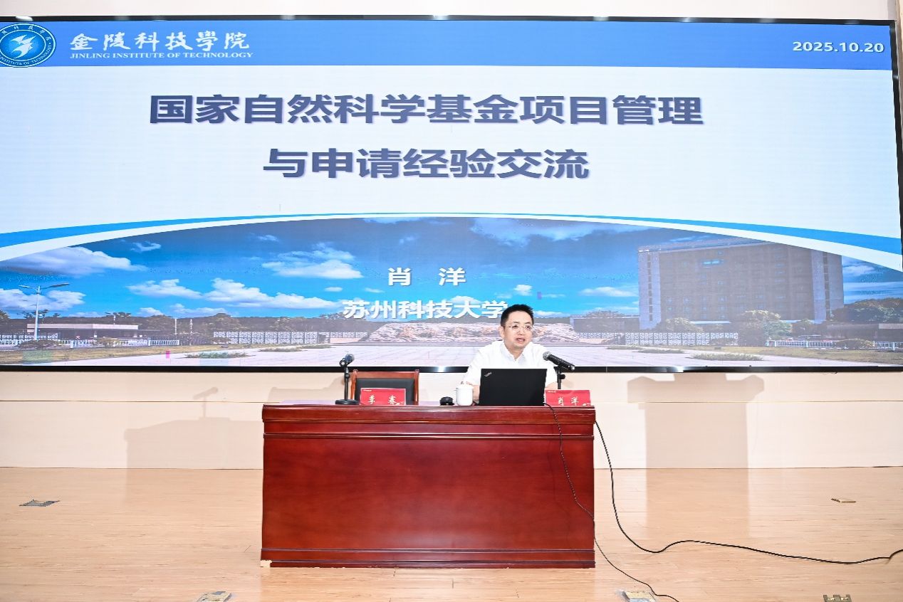 会议第二阶段,苏州科技大学副校长肖洋应邀作国家自然科学基金项目申报专题讲座。肖洋结合自身多年的科研工作经验和国家自然科学基金项目申报经历,对国家自然科学基金申请工作进行了全面剖析,详细介绍了国家自然科学基金项目的类别和评审环节,传授了基金项目撰写经验和注意事项,同时分享了苏州科技大学国家自然科学基金管理经验。报告从宏观处着眼、从细微处入手,报告站位高、方法实、要点细,对基金申请书的撰写具有重要的指导意义。