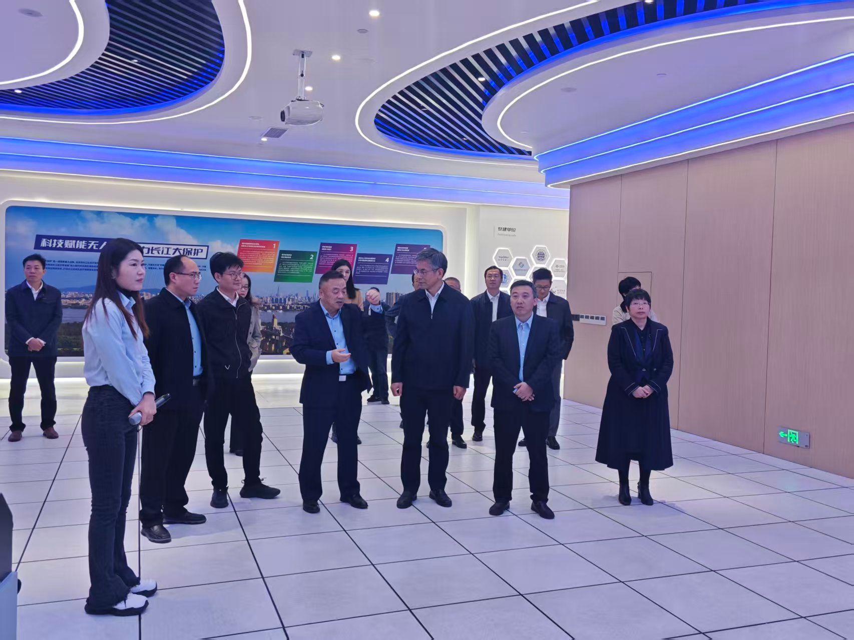 签约仪式后,方正陪同刘志远、季赛一行参观了江北新区规划展览馆、浦口高新区南京民用无人驾驶航空运行管理中心,并进行交流座谈。