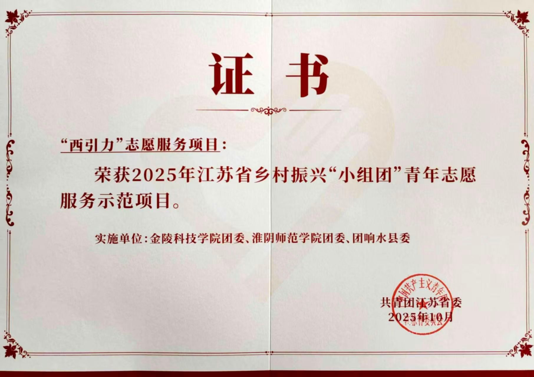 近日,共青团江苏省委在江苏大学生志愿服务乡村振兴计划20周年主题活动暨“小组团”青年志愿服务项目建设推进会上公布了20项乡村振兴“小组团”青年志愿服务项目名单,其中,kaiyun官网团委与淮阴师范学院团委、响水镇团委联合打造,园艺园林学院23园林(专转本)班学子尹富龙深度参与的“西引力”小组团志愿项目成功入选,并荣获示范项目称号。