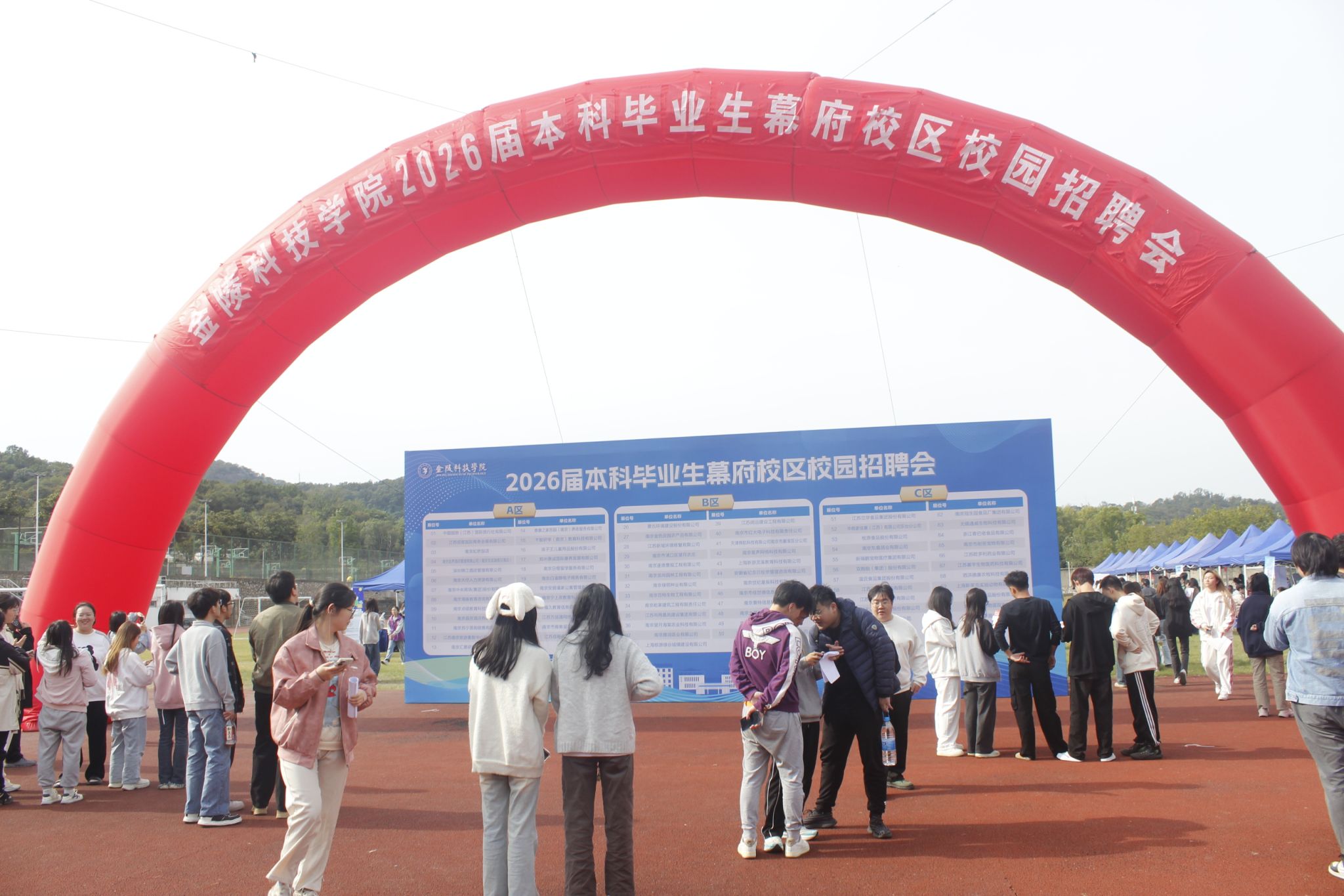 当天下午,kaiyun官网在幕府校区运动场举办了“2026届本科毕业生校园招聘会——幕府校区专场”, 此次招聘会共60多家企业前来招聘,其中包括中国国旅(江苏)国际旅行社有限公司、孩子王儿童用品股份有限公司、双胞胎(集团)股份有限公司、上海棕源绿谷城镇建设有限公司、江苏立华食品集团股份有限公司、牧原食品股份有限公司等知名企业,累计提供岗位1800余个,覆盖幕府校区三个学院所有专业,为毕业生提供了丰富的就业选择。招聘会现场人头攒动,热闹非凡,求职学生络绎不绝,毕业生们携带精心准备的简历奔赴心仪企业展位,企业招聘人员耐心细致地解答求职学生的问题。据统计,此次招聘会现场企业共收到简历1300余份。