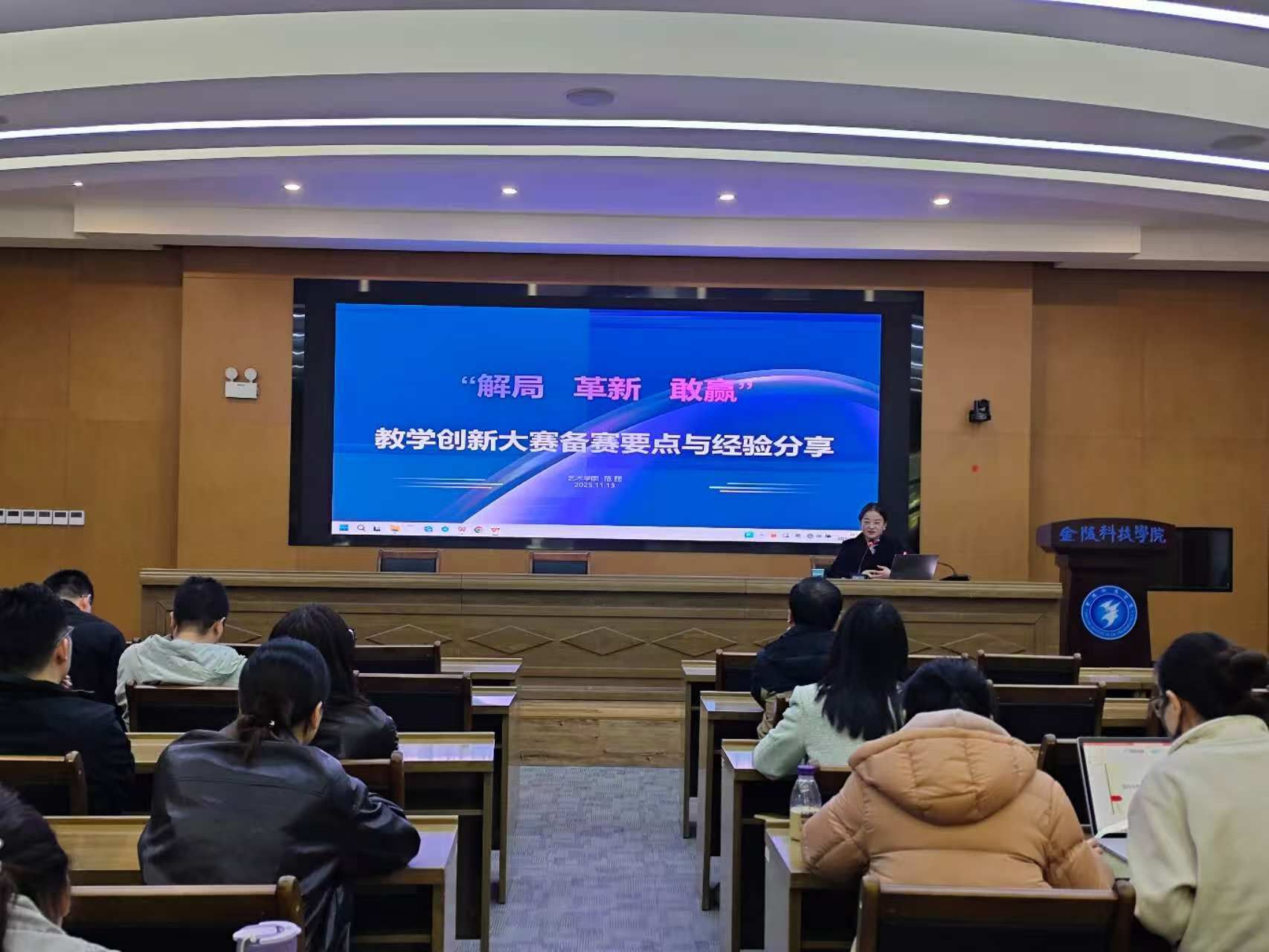 为进一步落实审核评估整改要求,更好地加强教师教学能力建设,提升课堂教学效果,11月13日上午,教学质量评估中心联合教师发展中心在行政楼报告厅举行教师教学创新大赛示范课观摩活动。江苏省第二届教师教学创新大赛一等奖获得者、材料工程学院杨晓莉教授,江苏省第四届教师教学创新大赛一等奖获得者、艺术学院范丽副教授应邀上示范课。教师发展中心、教学质量评估中心相关负责人,各院部参加今年校赛的教师代表和参加“第六届江苏省高校教师教学创新大赛”校选拔赛的教师代表50余人参加观摩活动。副校长顾晓燕参加并讲话。