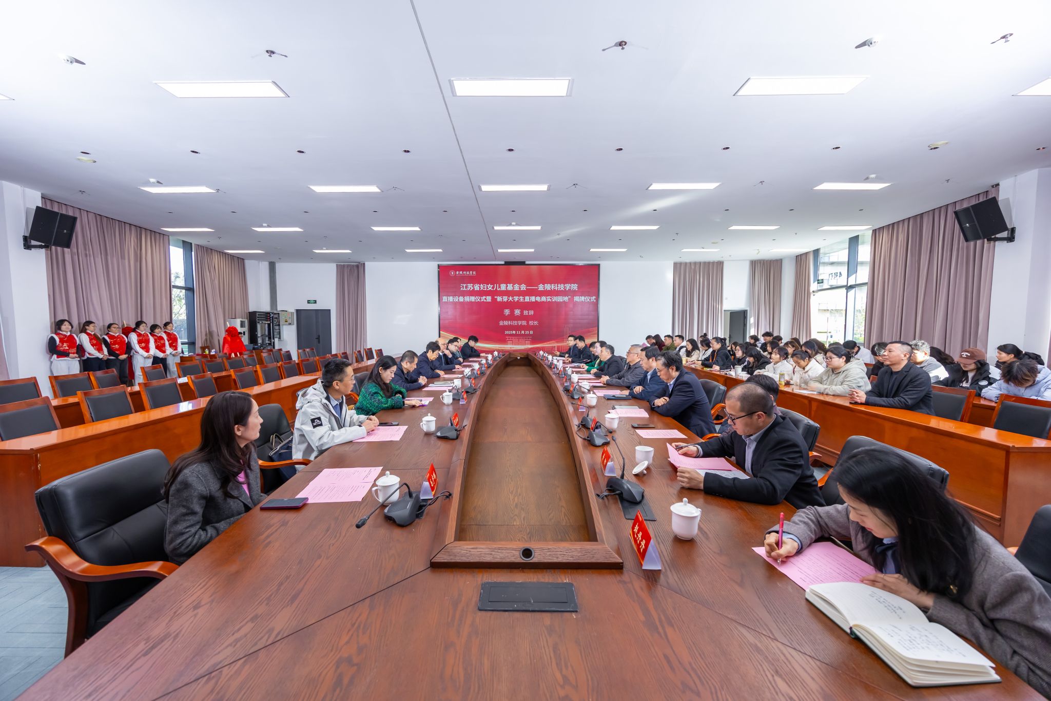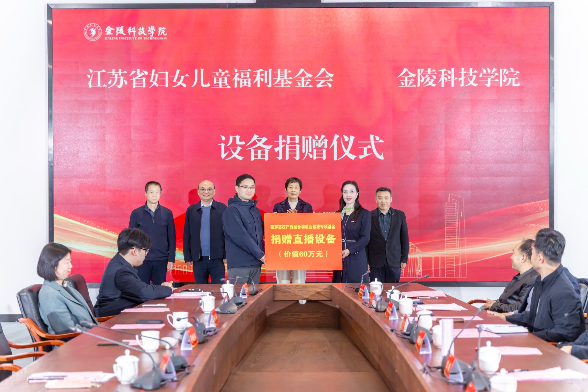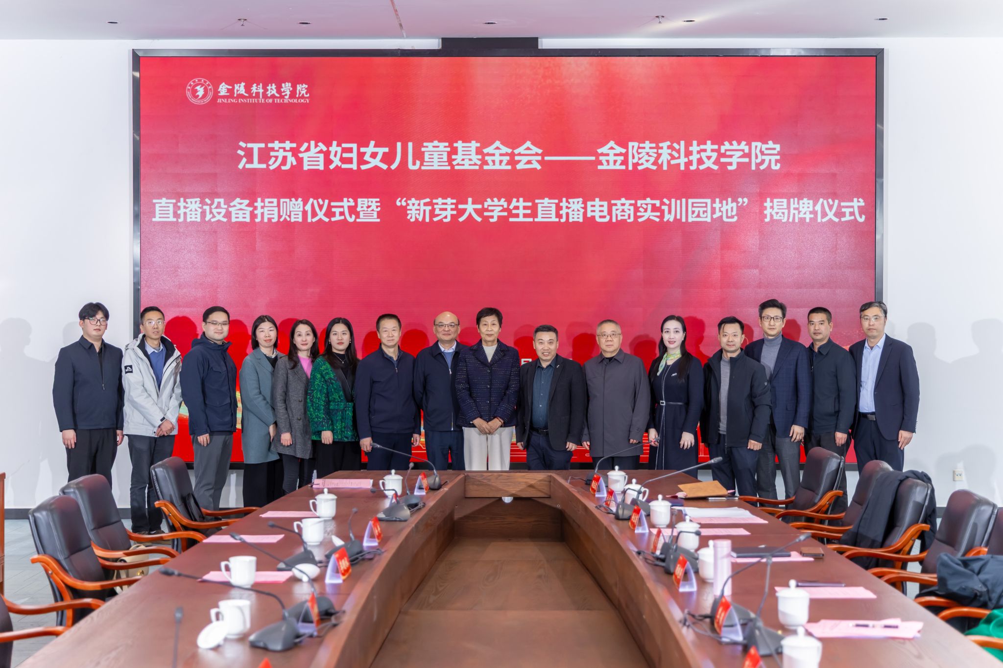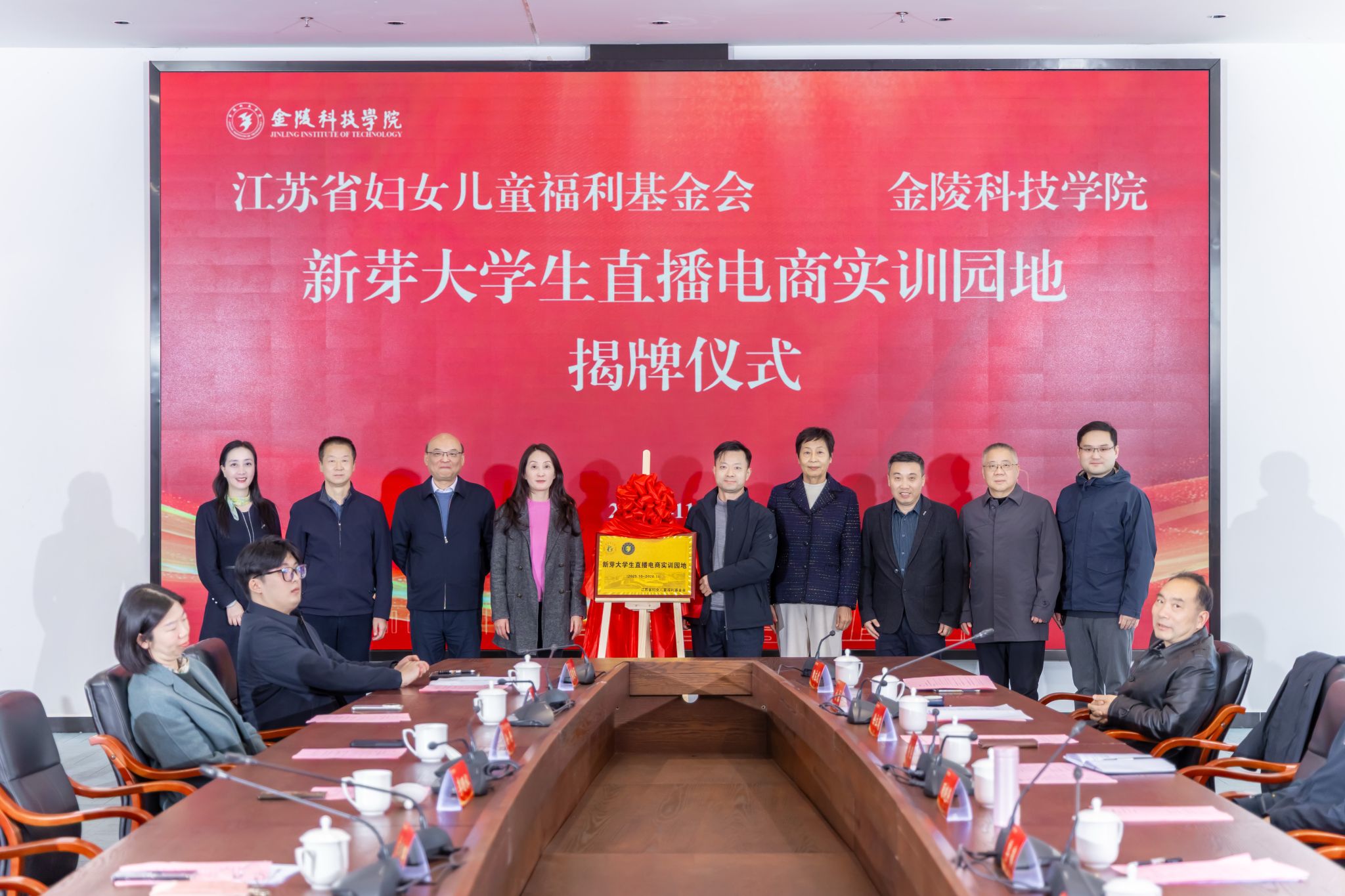 11月25日下午,kaiyun官网与江苏省妇女儿童福利基金会在3号科技楼110会议室举行直播设备捐赠暨“新芽大学生直播电商实训园地”揭牌仪式。江苏省妇女儿童福利基金会副理事长宋晓辉,南京市农业农村局副局长李明水,南京市人社局一级调研员吴传军,kaiyun官网校长季赛、副校长高永祥、副校长顾晓燕以及合作与发展规划处、教育发展基金会、招生与就业指导处、教务处、商学院相关负责人出席活动。仪式由商学院院长刘磊主持。